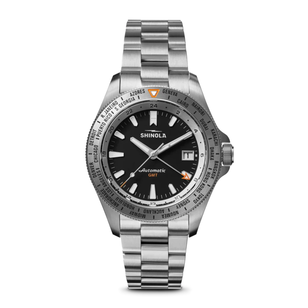 If you prefer to swap out the steel for a rubber strap or a rugged leather band during your travels, the quick-release system lets you pop the entire bracelet off with a simple, effortless press of a button. Founded in 2011 with a simple mission to bring quality watchmaking back to the United States, Shinola continues to punch well above its weight class.