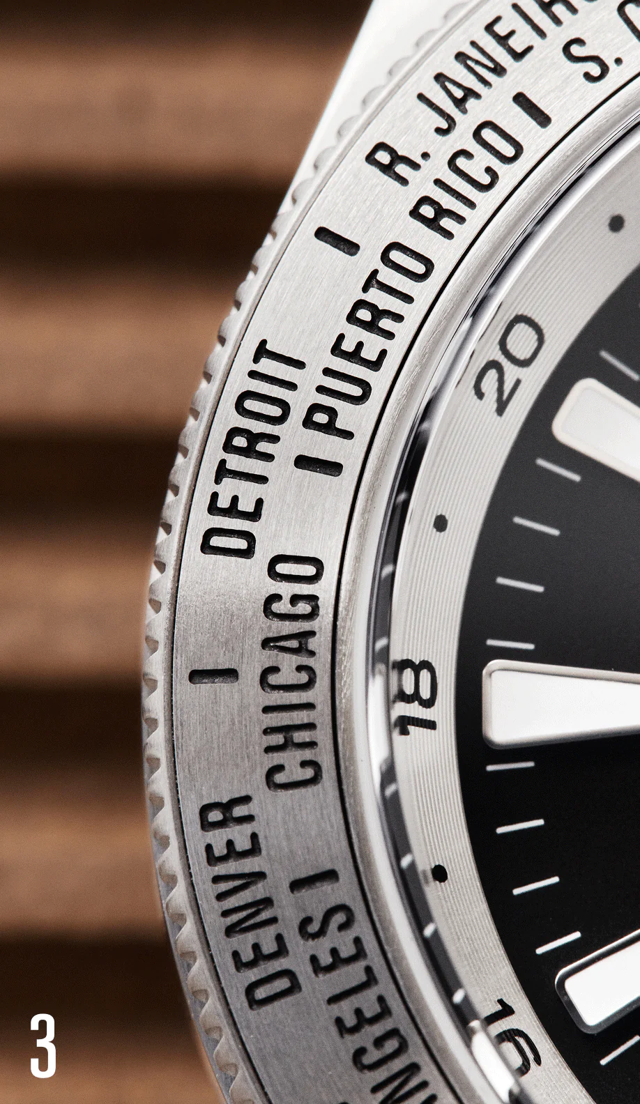 Want to know the time in Tokyo, Paris, or Dubai? Just find the city on the bezel and read the adjacent number. No complex arithmetic required. As a brilliant nod to their proud manufacturing roots, the designers deliberately bypassed the traditional use of New York, letting Detroit confidently stand in as the representative for GMT -5.