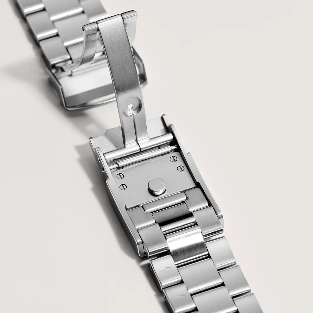 A major pain point with luxury steel sports watches is getting the bracelet fit exactly right as your wrist naturally expands and contracts throughout the day. Shinola has tackled this issue masterfully, outfitting the watch with a polished and brushed stainless steel bracelet loaded with clever, user-friendly innovations.