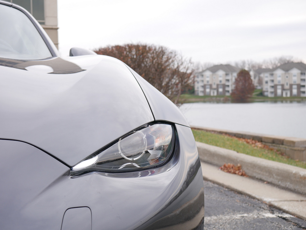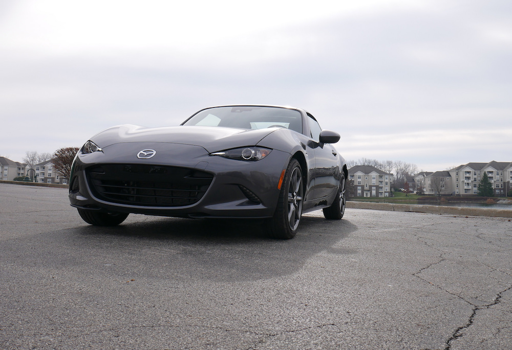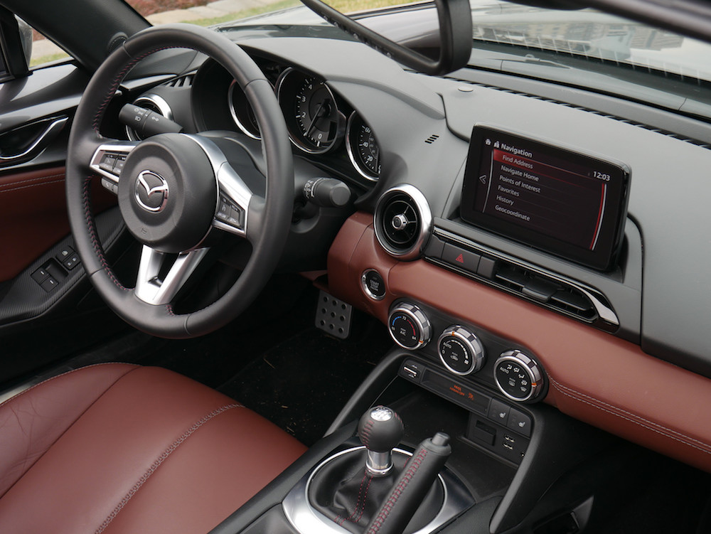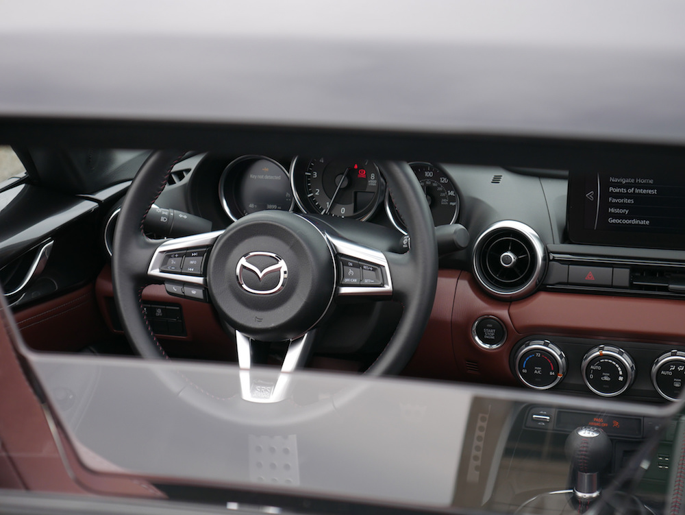 The unique hardtop has a beautiful tear-drop shape when up. Flip the switch to retract the roof, and 13 seconds later you have a Targa-esque look that is just as handsome. The whole top doesn’t go down, and we like it better that way. Unfortunately, wind buffeting leaves a bit to be desired, but otherwise Mazda nailed the hardtop convertible MX-5 with this model.