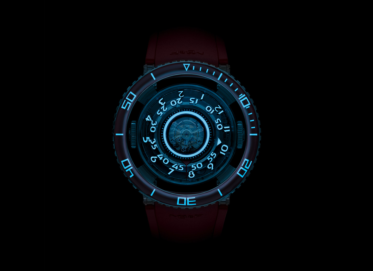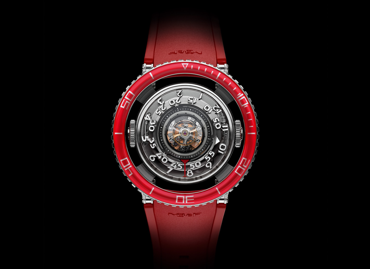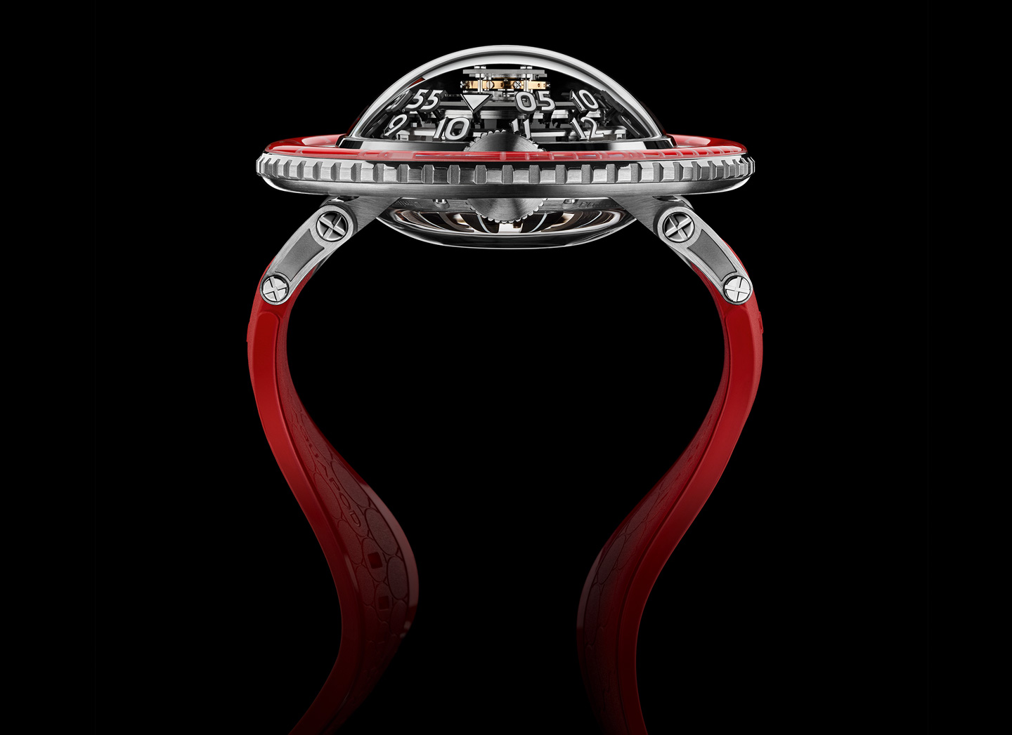 With a 50m water resistance, the HM7 Aquapod will be right by your side on any underwater adventures and deliver a first class performance from the minute you head beneath the waves until you re-emerge. The hours and minutes are displayed by two aluminium / titanium spherical segment discs which rotate on oversized central ceramic bearings (for the Platinum Red edition, three-dimensional “floating” hour and minute numerals) and you’ll find it hard to find another timepiece with a display quite as compelling as the Aquapod.