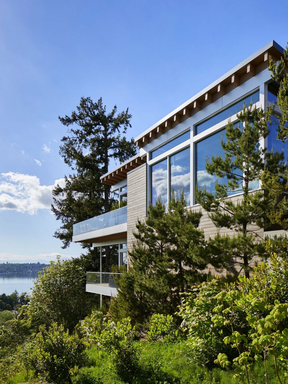 The Mercer Island Residence is located, as the name suggests, on Mercer Island in the middle of Seattle’s Lake Washington and boasts glorious views out upon it. As mentioned, the owner of the property is an avid swimmer and water features heavily throughout the design of this contemporary piece of architecture. It has a reflective pond, a lap pool, and a jacuzzi dotted about its footprint and they all add significantly to the aesthetic appeal of the property.