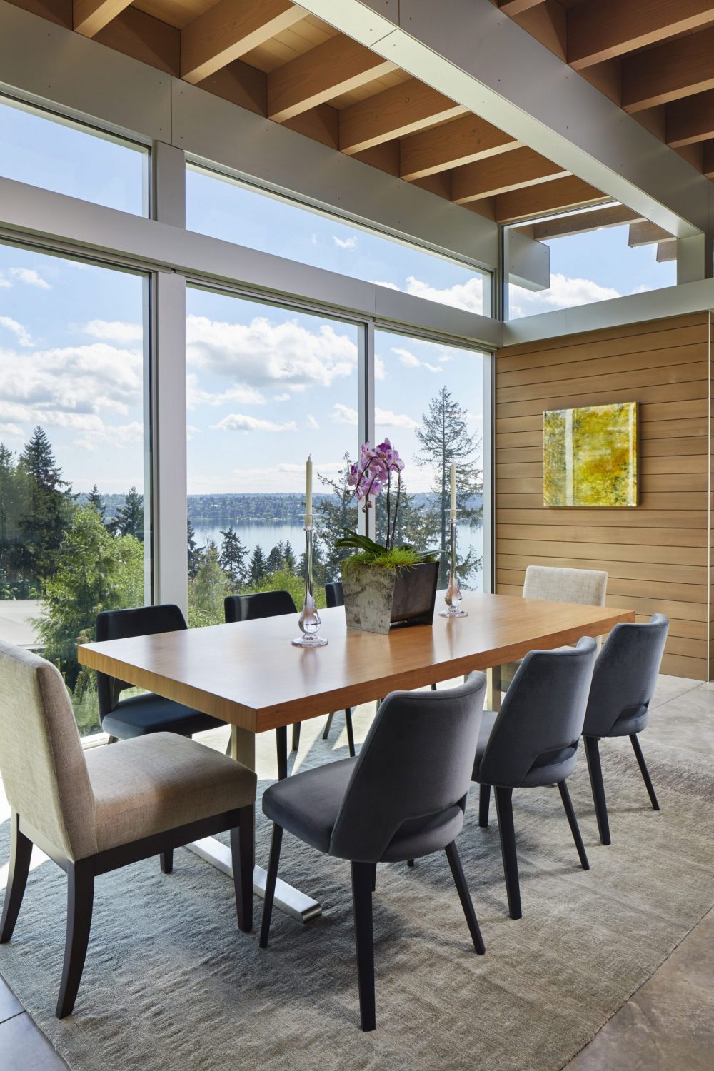 Extremely grandiose in nature, the Mercer Island Residence has some 4,200-square-feet of living space and it was designed for a client who had a desire for a sanctuary within the city, one that delivered privacy to him but that also made the most of the property’s panoramic views of Lake Washington and the Olympics Mountains that stretch beyond. This three-bedroom home is laid out on two levels and has a contemporary vibe throughout its interior.