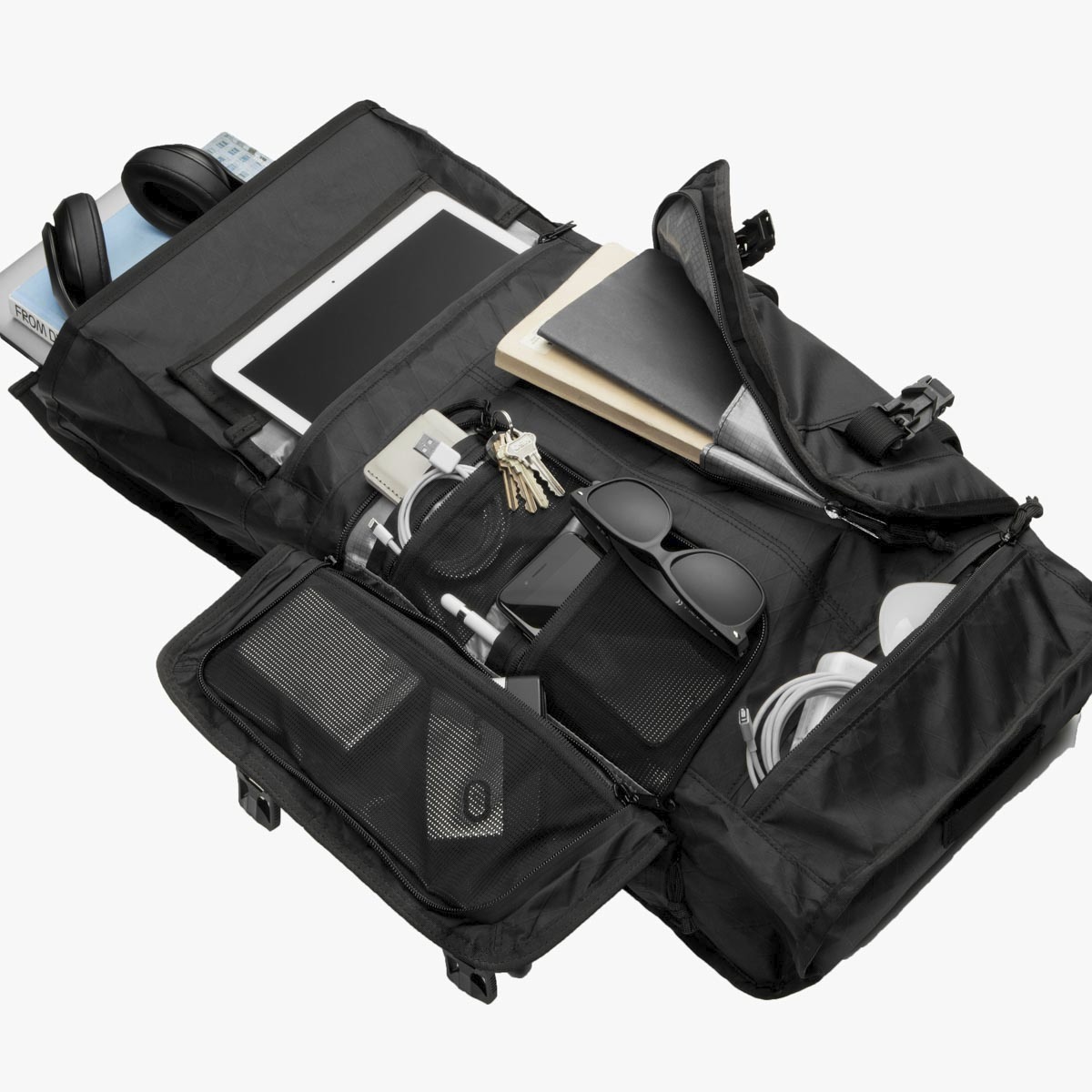 You’ll find everything you need and more with the Mission Workshop Rhake: VX Weatherproof Laptop Backpack which has an internal volume of some 22L which is more than enough to meet most storage requirements. It has a dedicated padded pocket fits all 15-inch and most 17-inch laptops, a large 22-liter roll-top main compartment can grow or shrink as needed to fit extra clothes and gear and two zippered organisational pockets with interior zippered mesh compartments for small accessories, notebook, business cards and your day to day EDC.