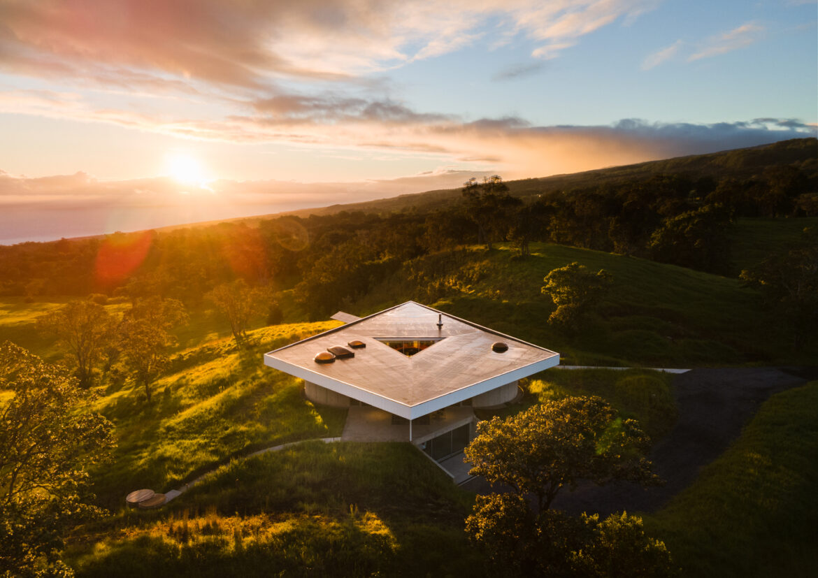 Majestically cool, Musubi House from Craig Steely Architecture came to be based upon a simple request: namely, make a house that embraces the nature of the windswept grasslands of the Hamakua coast and whilst that might sound easy given the stunning nature of this area, the conditions did, of course, represent a challenge with obstacles needing to be navigated regularly. Craig Steely Architecture responded with a house that floats in this rolling sea of grass like a ship floats in the ocean. Like a ship’s prow, the sharpest end of this triangular house deflects the formidable wind that it is often subjected to.