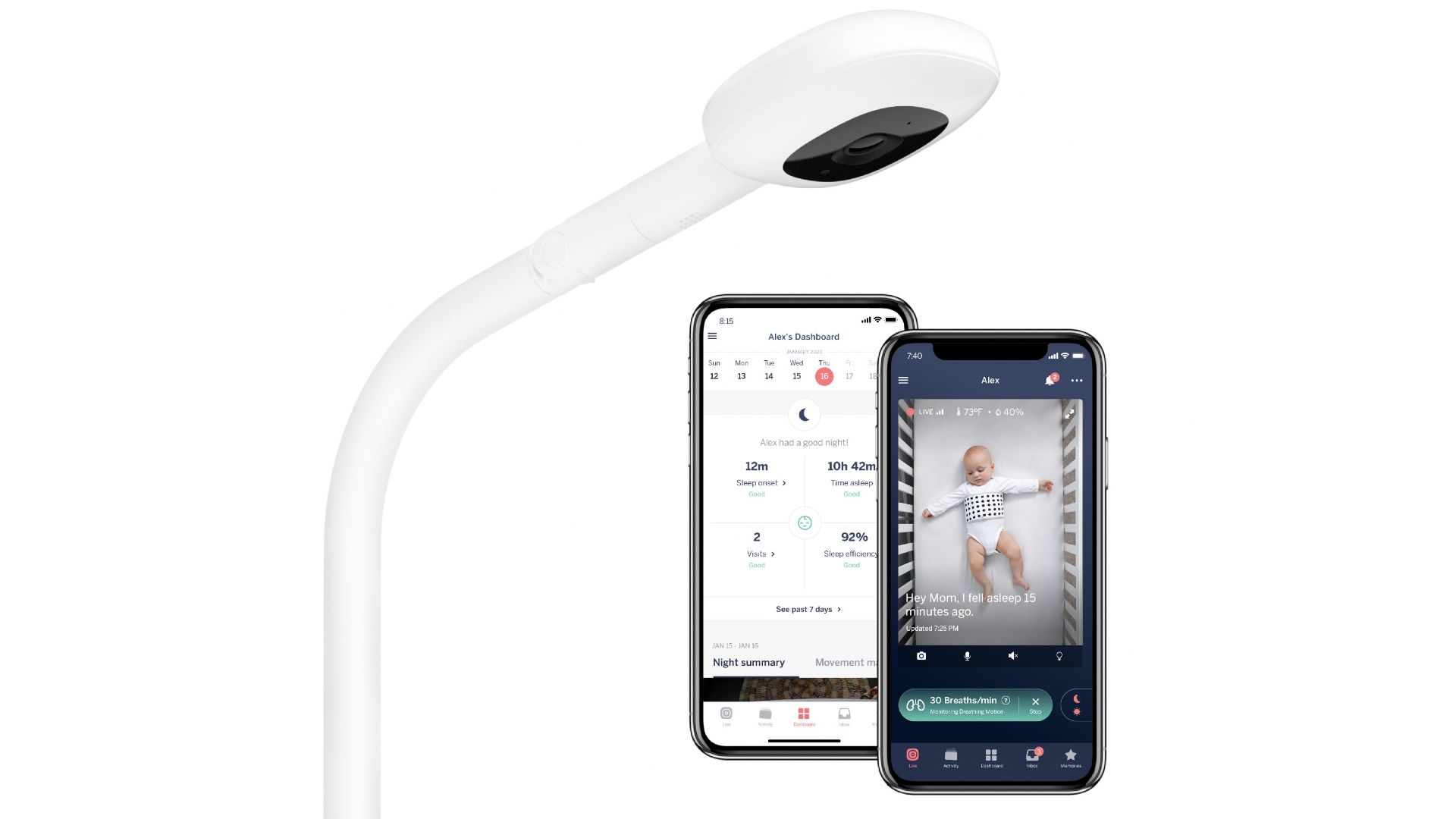 Nanit gives you a stunning overhead view on your phone, your tablet, or even Amazon Alexa. Stay in the loop when your screen is off or they’re in the bassinet. You can see your baby’s sleep report each morning, and get personalised expert Sleep Tips each week. Rest assured knowing they’re resting comfortably. Breathing Wear monitors their breathing motion and alerts you the second you’re needed. One small Breathing Band is included with your purchase of any Nanit Pro Camera.