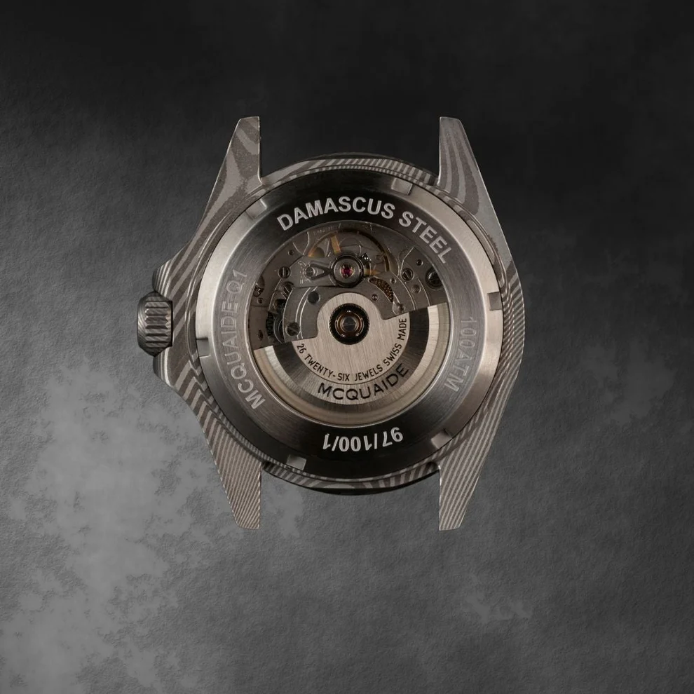 You get a one-of-a-kind Damascus steel case, a 1000m-rated dive chassis, a Swiss automatic movement, and a stunning Guilloché dial. Backed by a 2-year warranty, the McQuaide Q1 isn’t just a watch; it’s a statement.