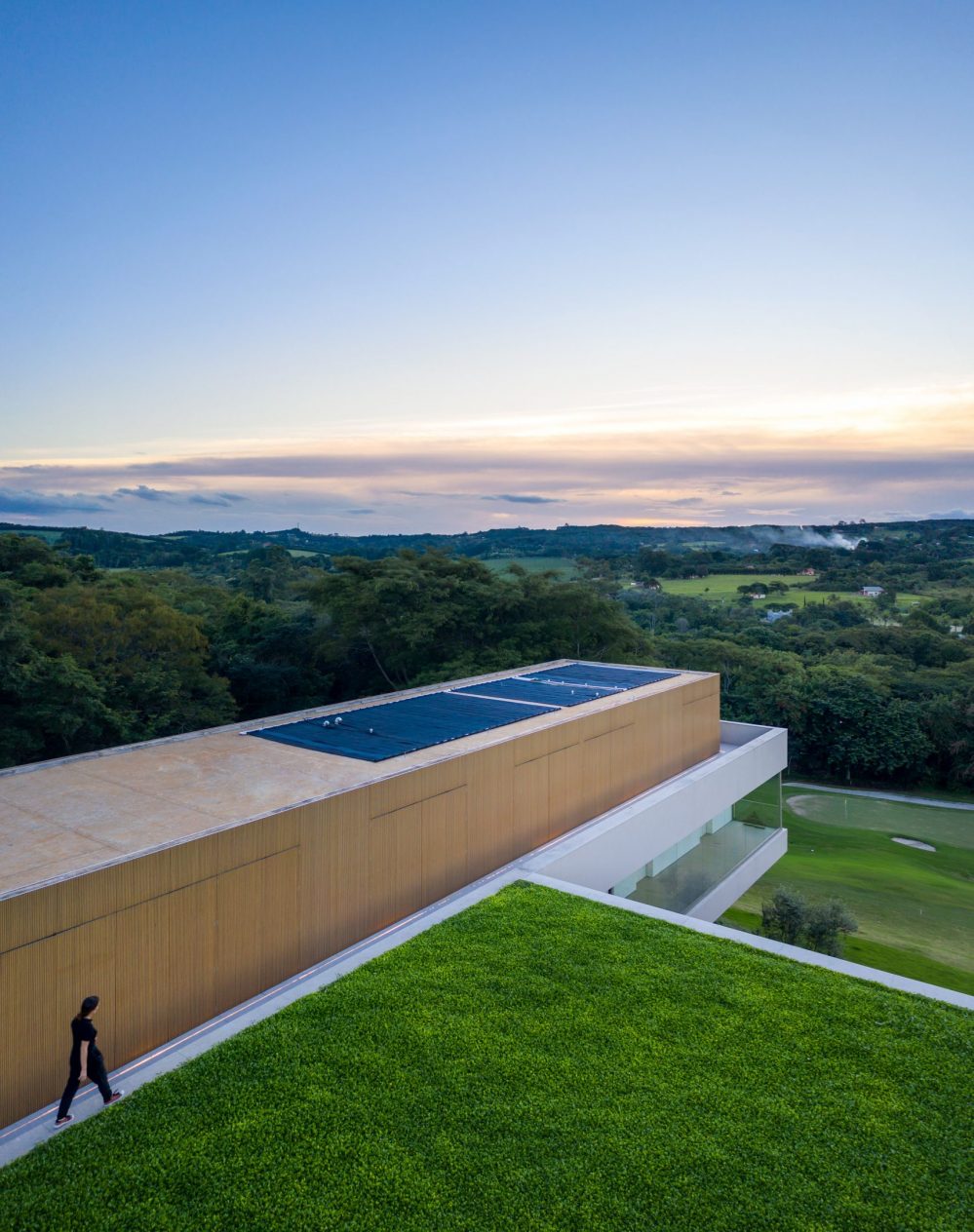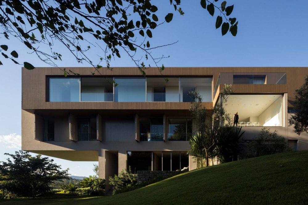 The NVD House from Studio Arthus Casas is located in Sao Paulo, Brazil, and gives the fun-loving owners the opportunity to bathe in a cantilevered swimming pool or play golf on the roof. It is a three-storey home in the Brazilian city’s luxury golf course community, Quinta da Baroneza, which is also home to a wide array of lakes, forests, an equestrian centre and, last but not least, Brazil’s Atibaia River.