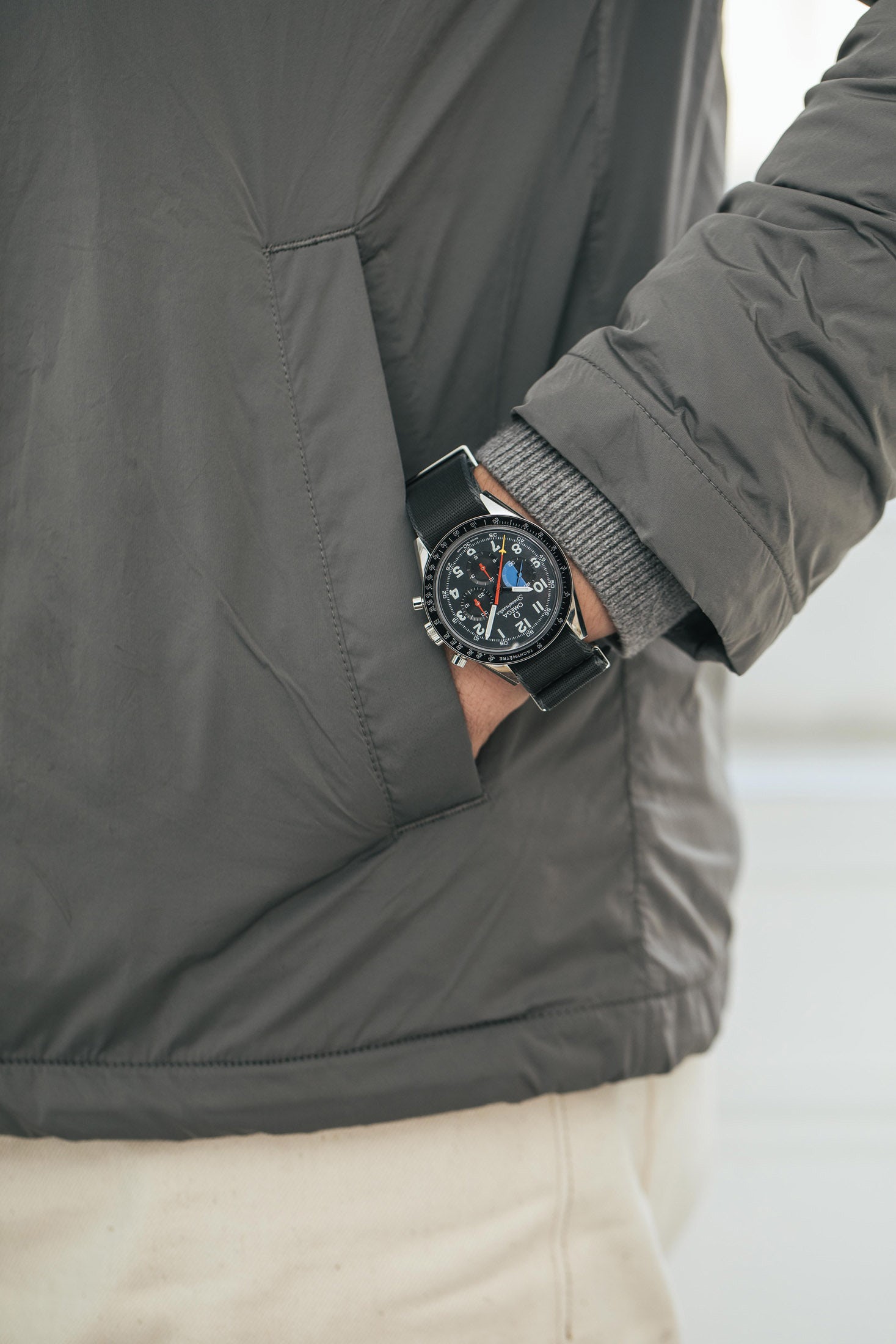 Aesthetically speaking, the Omega Speedmaster HODINKEE 10th Anniversary Limited Edition Watch is distinctly contemporary, with a dial and hands that make this limited edition quite unlike any manually wound Speedmaster ever created. This stunning timepiece from HODINKEE and Omega combines a vintage profile with a entirely modern dial design, which takes its design inspiration from HODINKEE founder and CEO Ben Clymer’s very first timepiece: namely an Omega Speedmaster MK40 gifted to him by his grandfather.