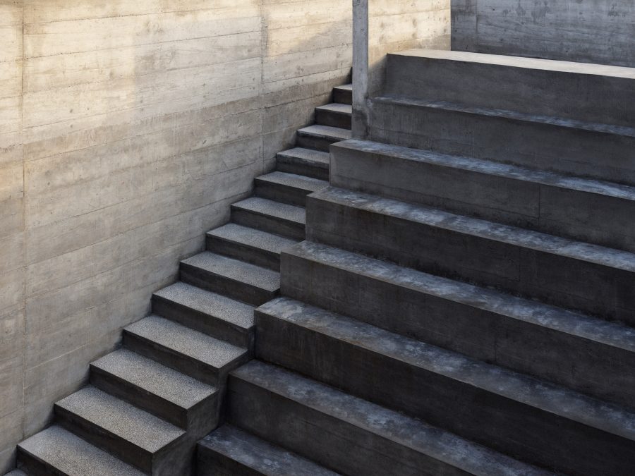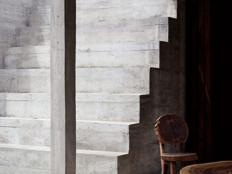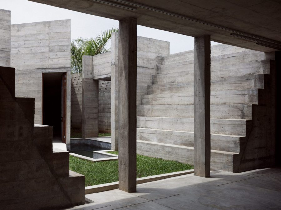 A property that impresses both on the inside and outside, the Open Air Fortress House has a garden courtyard which is surrounded on either side by stairs that lead up onto the building’s roof. The stairs are cast alongside wider steps that can be used for relaxing with a book or displaying statues, plants or other pieces of artwork. Beyond the garden is a covered patio which stretches out the width of the house and accommodates the main living space of the home where the residents will be spending most of their time.