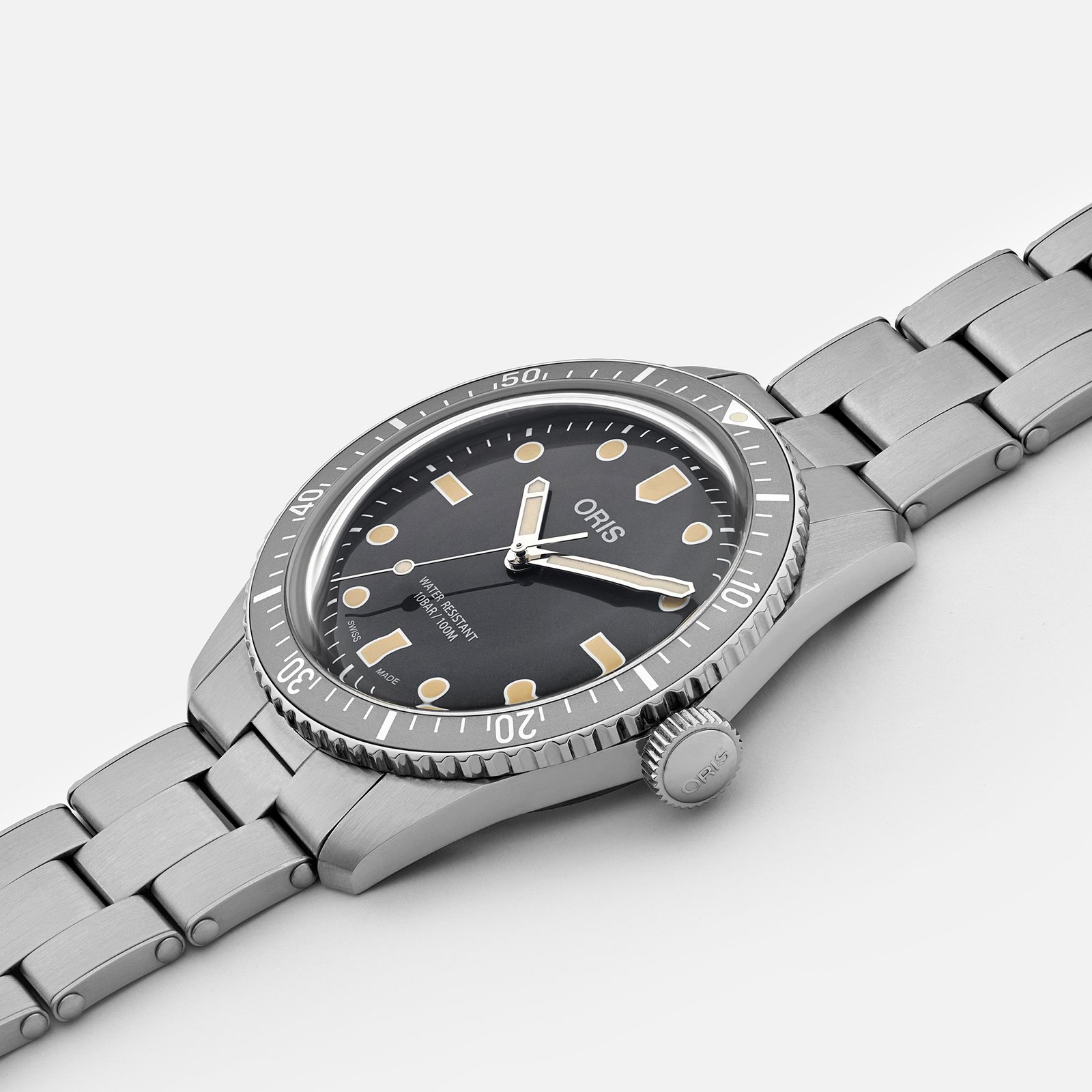 Hodinkee are big fans of the Sixty-Five dive watch from Oris and jumped at the chance to be a part of this limited edition timepiece. This new version maximises the classic appeal and versatility of the original without compromising the adventurous and sporting nature of a great dive watch. For the Oris Divers Sixty-Five Limited Edition for HODINKEE, they have fitted the 40mm steel case with a faded grey bezel and a soft black dial with printed markers to give it its own distinctive aesthetic.