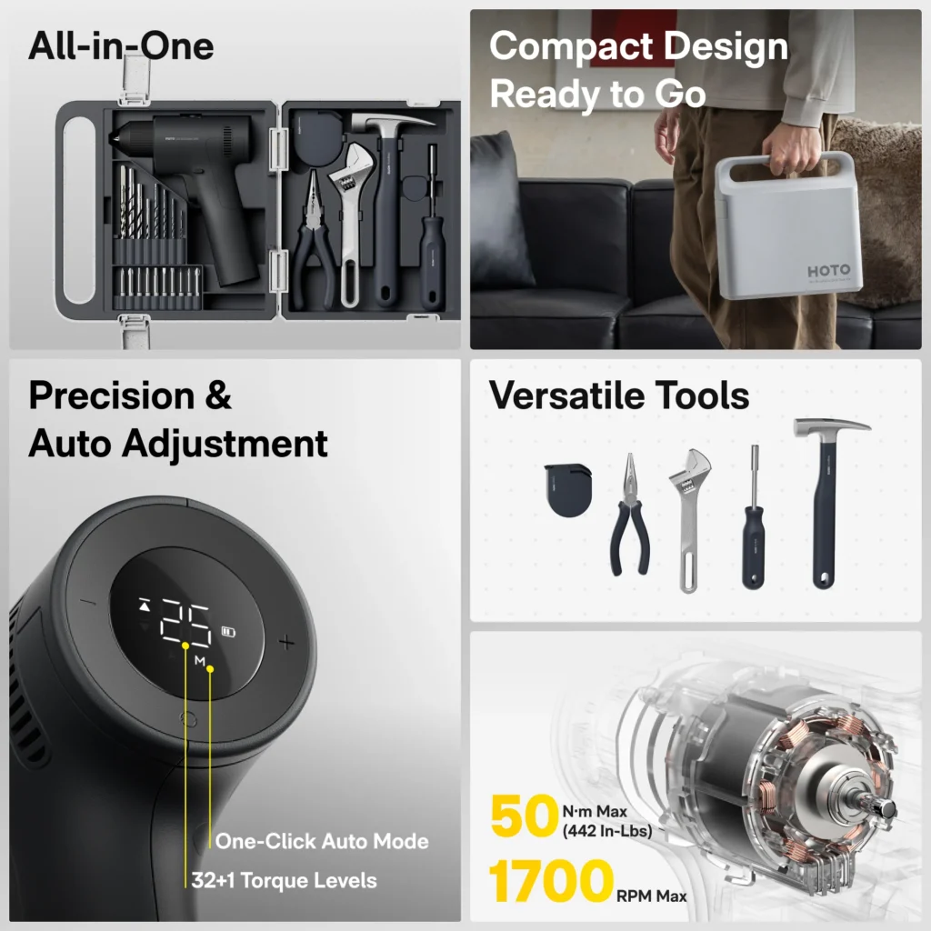 Together, HOTO’s primary sets form a highly scalable ecosystem that covers everything from basic household adjustments to heavy-duty weekend DIY projects, without ever compromising on visual appeal.
