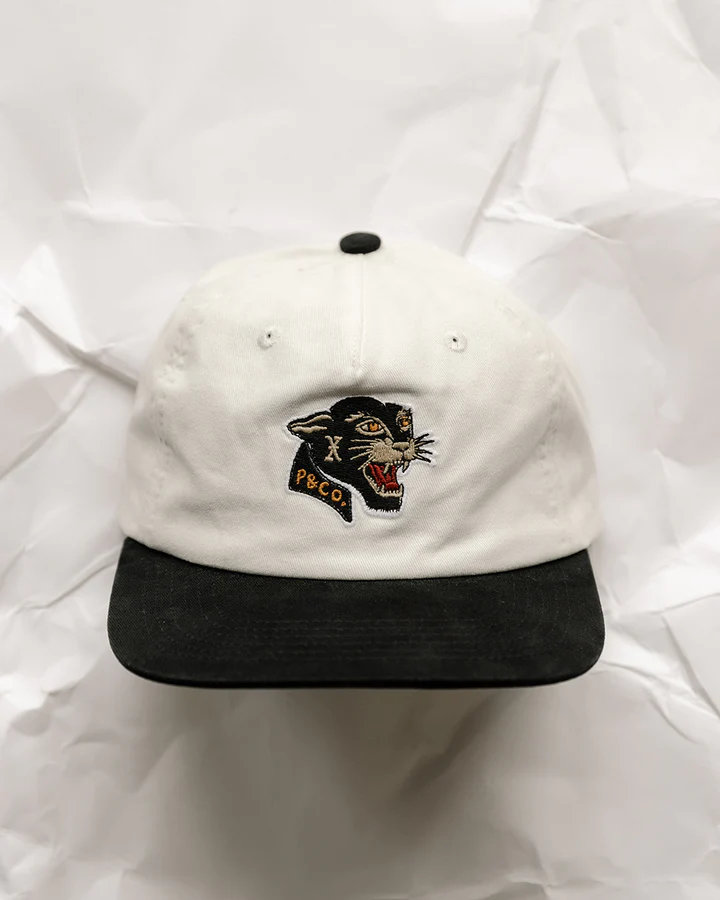 This super cool Paradise Forever Cap in ecru & black is a 5-panel cap is made from a durable 100% cotton twill. It has an adjustable strap, contrast peak & an embroidered patch design. Paradise forever.