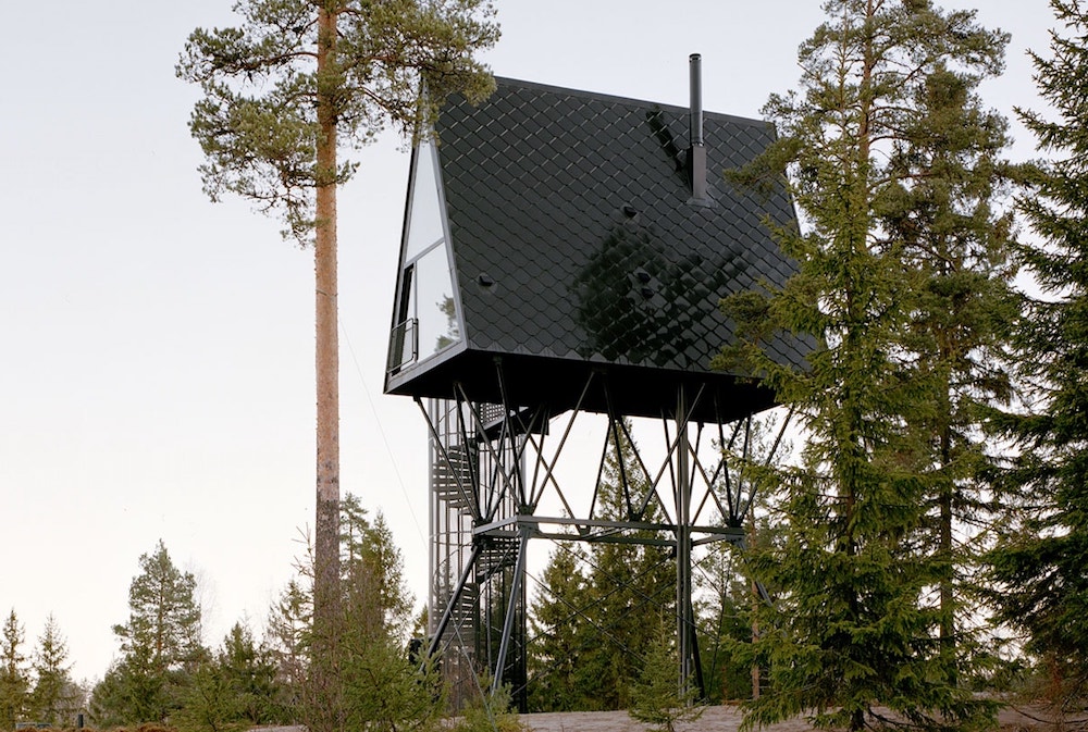 The Pan Treetop Cabins in Norway all have a muted exterior in the woods yet they have a glowing, warm, snug and safe interior that will draw you in and leave you wanting to stay for longer in the breathtaking natural surroundings. These superb cabins are found in Finnskogen which is a great natural reserve chock full of history and an abundant amount of animal life. Mystery and the inexplicable have always been a part of daily life for the Finnish people who settled there. The Finnish settlers most important god was called Tapio, a Finnish version of our Pan, the greek god of forests and meadows and this shines through in the design and location of the cabins.