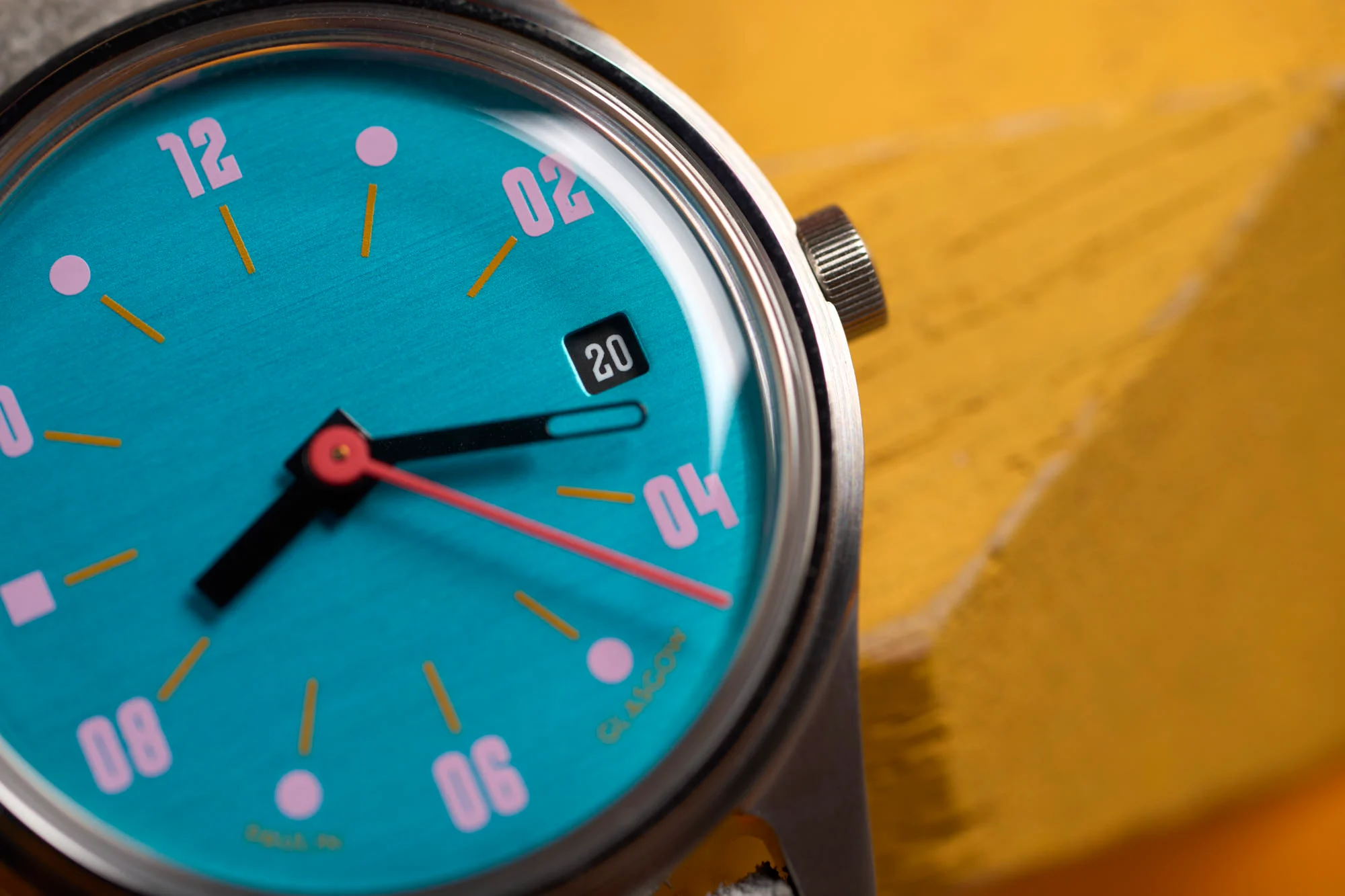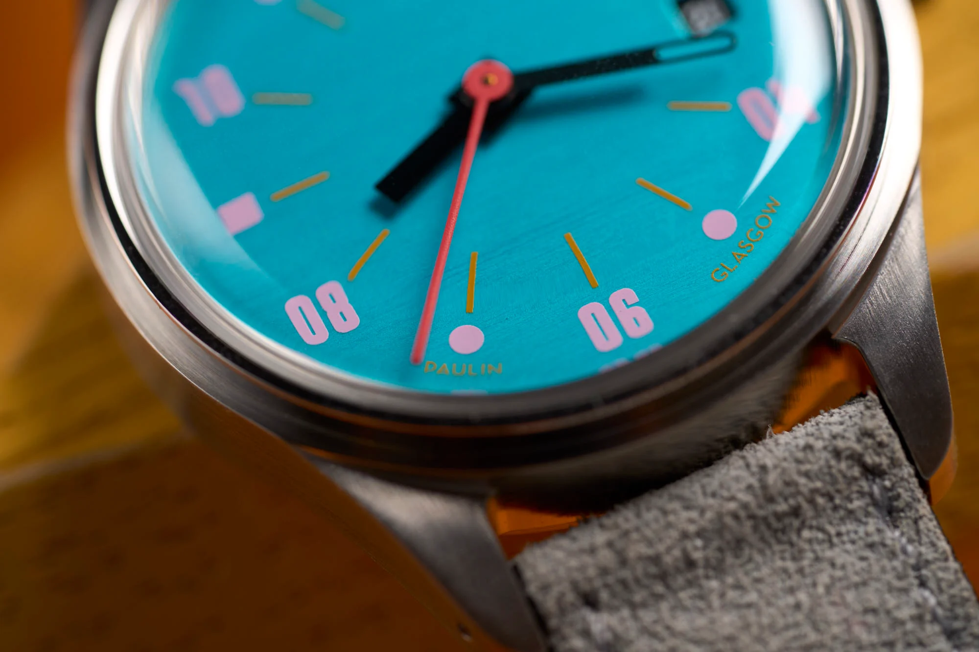 The Paulin NEO C Watch retails for $595 and is one of the most striking timepieces you’re likely to encounter. The Paulin Neo series is the company’s hit collaboration watch made in partnership with fellow Scottish brand anOrdain. Drawing its aesthetic inspiration from Postmodernism, the NEO is more than just a collab between two neighbouring watchmaking companies, as the founders of the two brands are, in fact, married to each other.