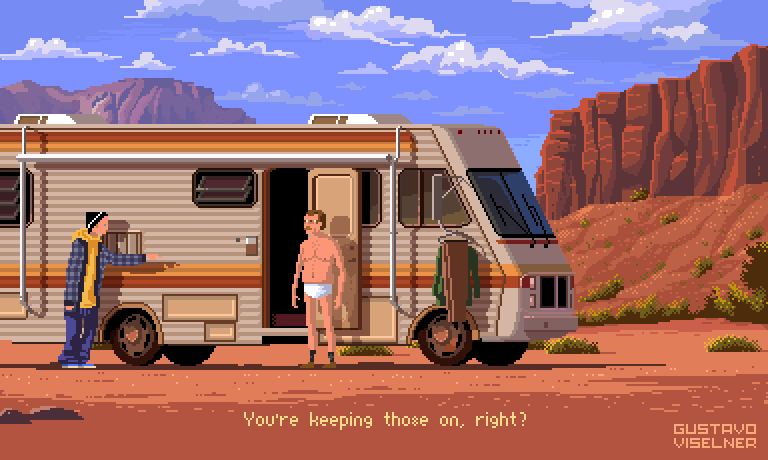 The amazing visuals of today’s videogames are something that we wouldn’t change for the world but, that being said, not a day goes by where we don’t miss the sort of minimalist masterpieces that we were playing in the 80s and 90s. This Pixel Art TV series from Gustavo Viselner lets us imagine what the games would be like if a Breaking Bad, Doctor Who or Rick & Morty adventure video game was released 20 or 30 years ago.