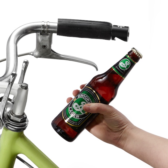 If you’ve got a bicycle and a penchant for craft beers then you, sir, are definitely in requirement of a Pub Nub. Devilishly simple in design and execution, the Pub Nub will append to the end of your bicycle handlebars to create an easy to use, hidden bottle opener that’s always there in a bind when you head out on the open road with your bike and beers in tow. Check out a couple of shots below: