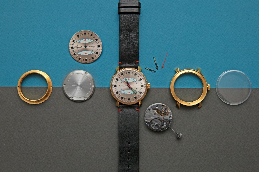 Boasting an incredibly bold design, this first class timepiece from Raketa with the horns having a very unusual inverted triangular shape and the bezel was extremely thin. This was a complicated 4-piece construction case that has a very unique system to hold the organic glass. The dial indicated a 24 hour time scale and represented the two poles. This design was officially approved and signed on 10 December 1969 by V.M. Rogachev, who was second-in-command of the Soviet Antarctic Expedition, who also stamped it with the official seal of the USSR “Arctic and Antarctic Research Institute”.
