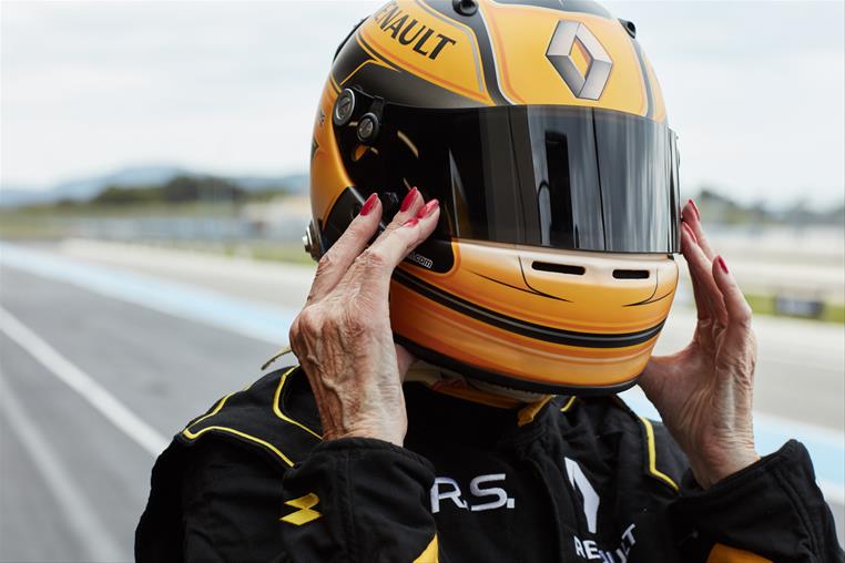 Renault Sport are a leading name in Formula One Racing and Rosemary Smith, looking for an opportunity to show that age is merely a number, jumped at the chance to climb into the cockpit of one of their seriously speedy machines and take it for a few laps around the circuit.