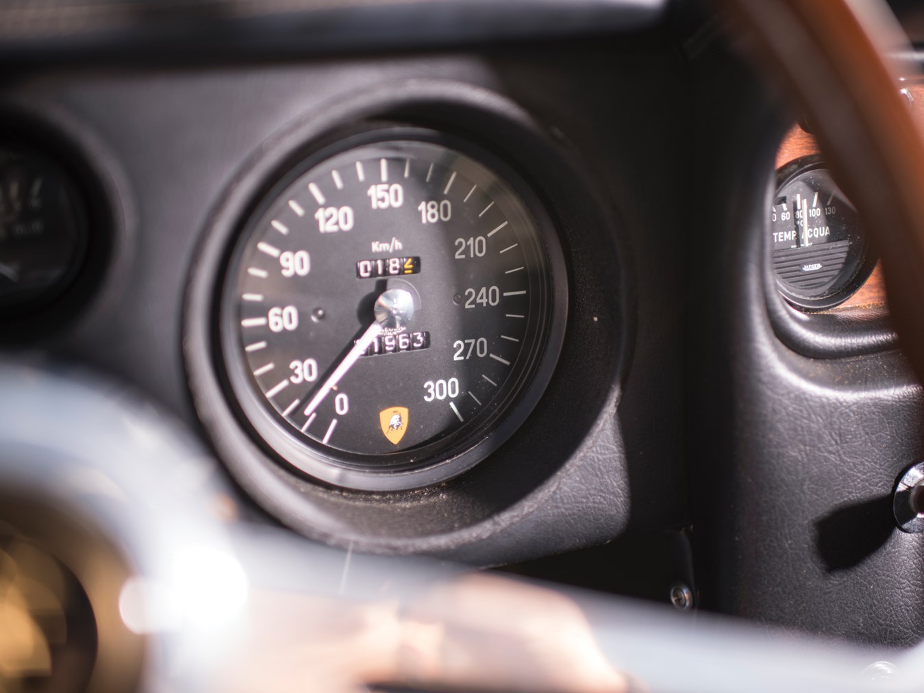 The Lamborghini 400 GT 2+2 Touring is a car built to go fast for long periods of time. It’s a driver’s car through and through. It features a 3.9-liter V12 engine with dual overhead cams that makes about 320 hp at 6,500 rpm. Power filtered through a five-speed manual transmission to the rear wheels.
