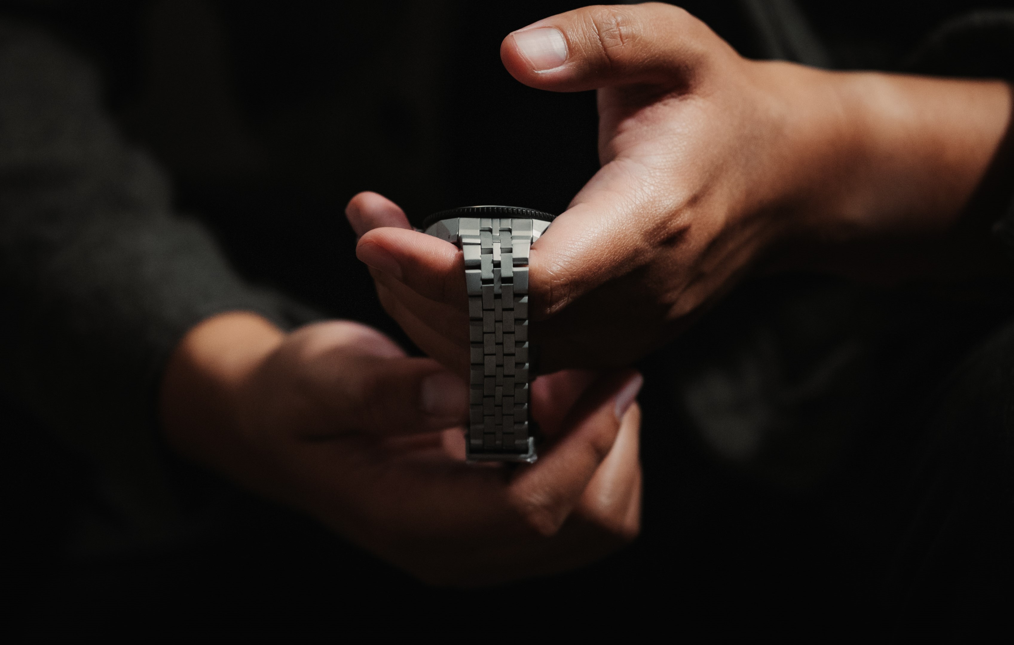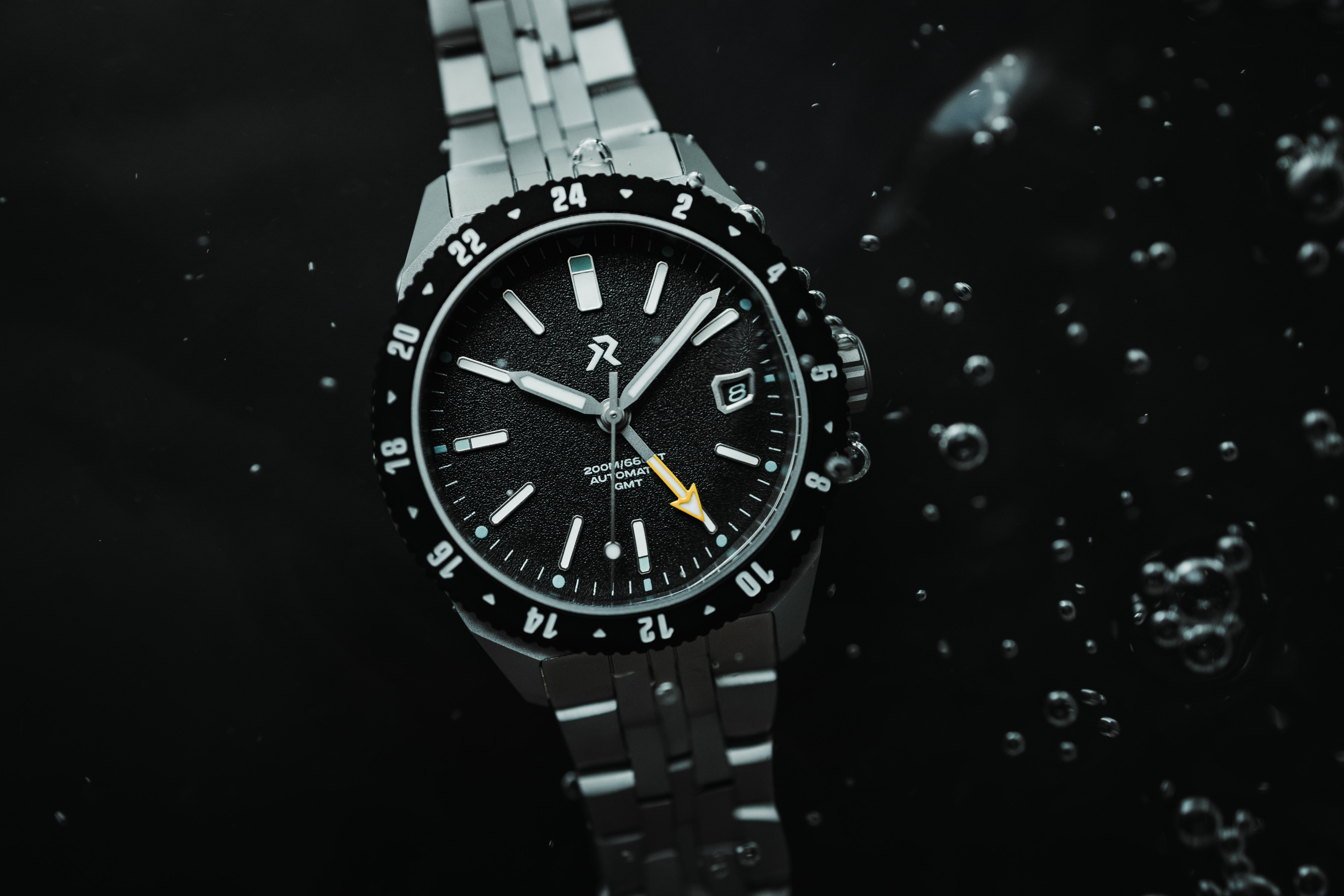While other bracelets are typically cut from steel rods and milled, every piece of the Hex-Link bracelet is individually stamped, drilled and milled to perfection by RZE’s craftsmen to bring you maximum comfort for daily wear. Some of the stand-out features of the Ascentus include the SII NH34 Automatic GMT Movement, 200m water resistance, applied indexes grain-texture dial with Super-LumiNova® and screw-down solid titanium caseback with Viton® gasket.