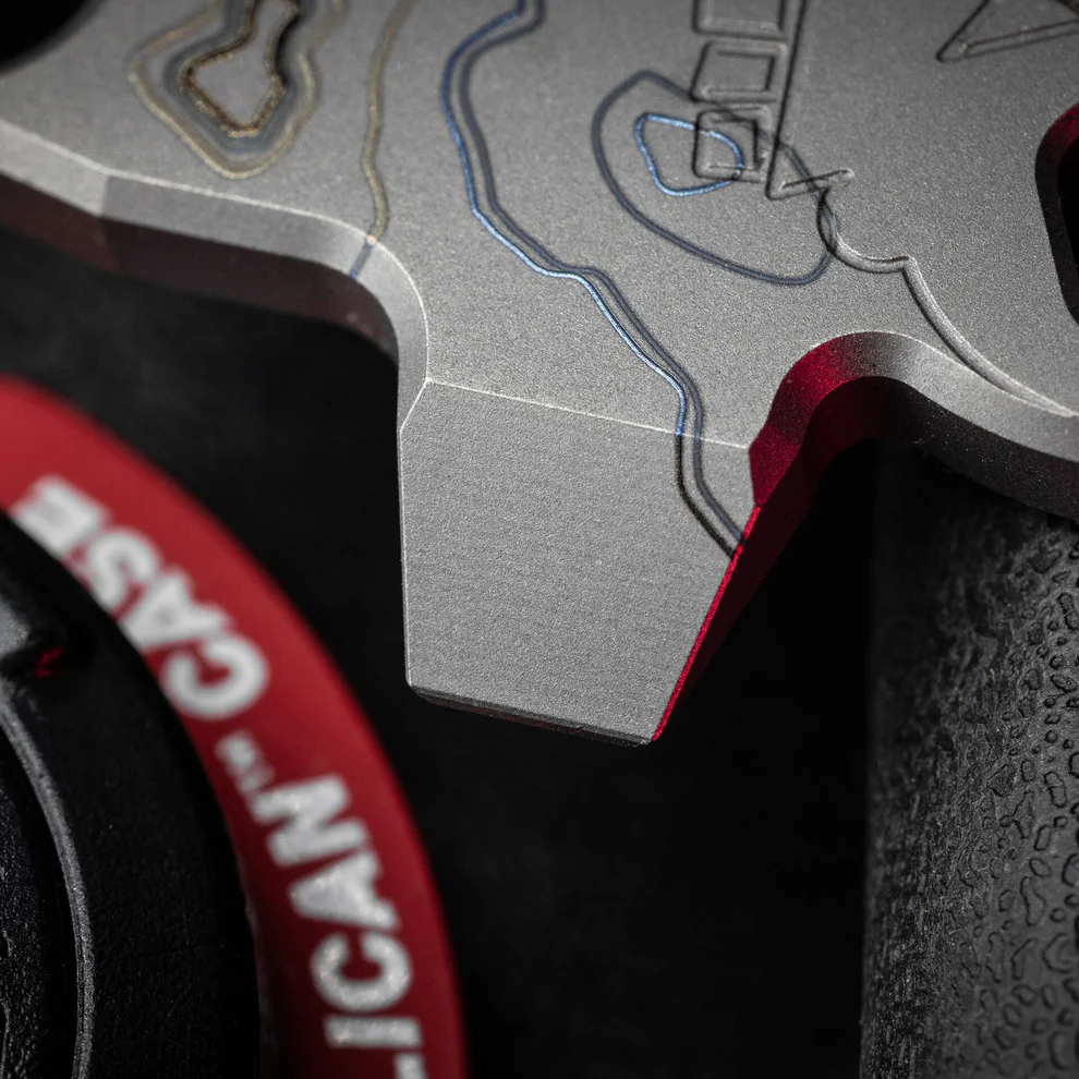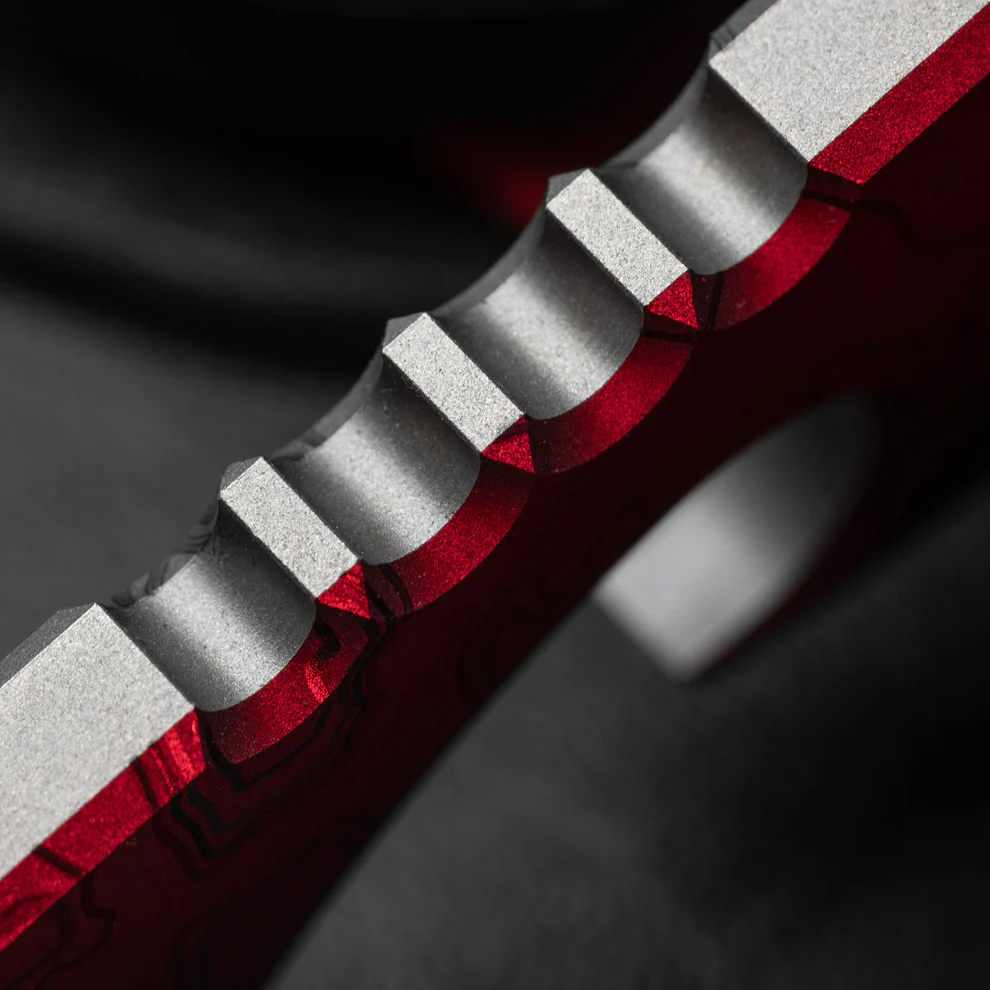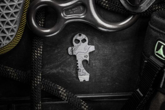 This stunning laser work is perfectly complemented by the brand’s signature milled “Mean Skull” motif and their classic lasered logo. It also features a generously sized lanyard hole that acts as a supplemental carry option, allowing you to easily attach it to your keys or weave a custom paracord lanyard.