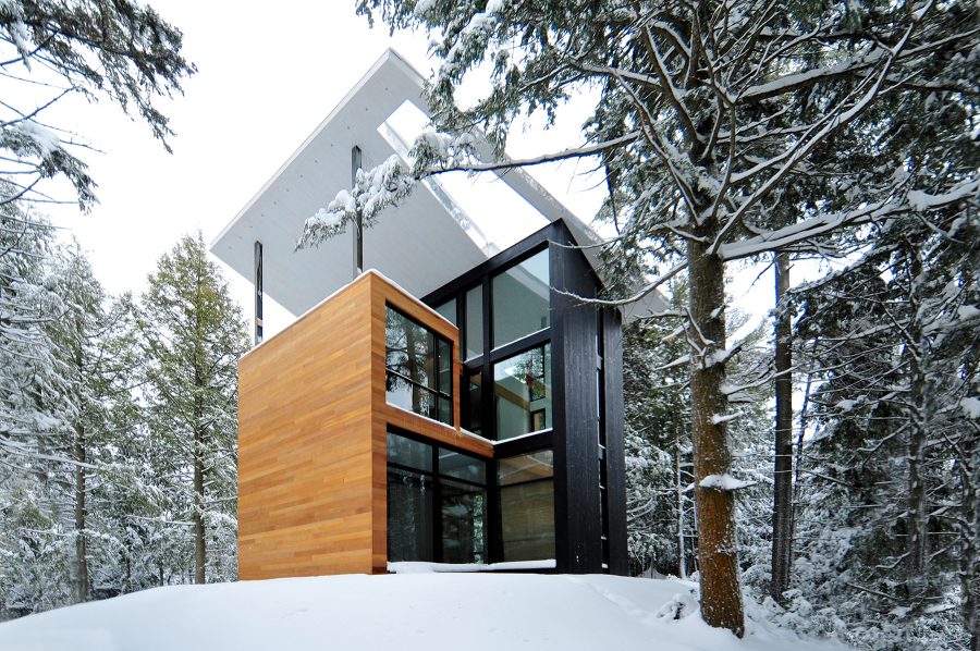 Situated in a forest in Bolton-Est, Quebec, Canada, the rather unimaginatively named Sculptor’s House by YH2 Architects is definitely one of the most impressive structures we’ve seen in a while from a visual point of view and the impact it makes externally is more than matched by its aesthetics from an interior design perspective. If you like your properties to make a mark and not follow the norm from a design point of view, this stunning piece of architecture from YH2 will be right up your street too.