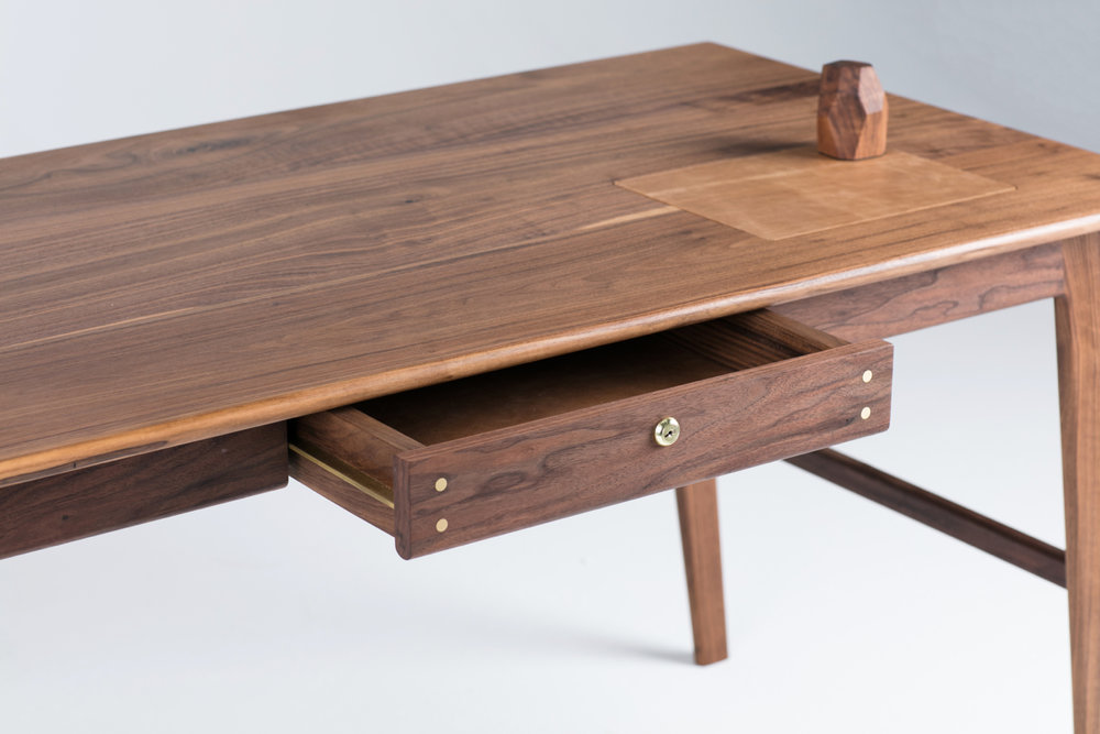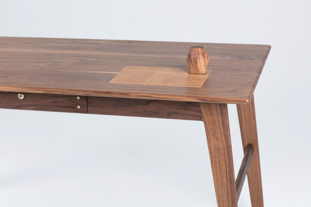 The Sean Woolsey Studio Wolf Desk ($4900) has a top apron which is a continuous board of walnut that comes with a lockable drawer for keeping your more valuable possessions and important pieces of EDC. The drawer slides on this striking desk are crafted from brass, as well as brass pins on the front of the drawer which have been chosen in order to match the lock. You can store and lock your valuables in the drawer with ease and ensure that your most important possessions are safe but always within arms reach.
