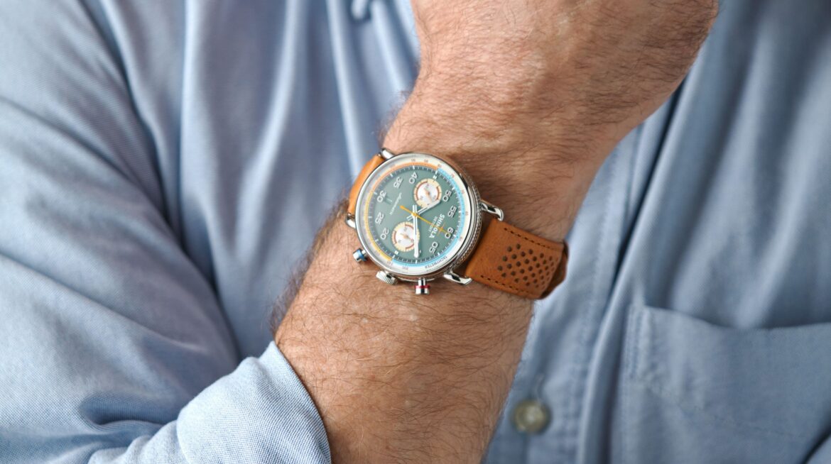 The Swiss-made Sellita SW510 BH movement within this classy offering from Shinola is a powerful engine that doesn’t just keep up with the competition, it sets the pace. With 27 jewels and a minimum 56-hour power reserve, it really is built to last. The full exhibition case back window allows you to admire the custom checkered flag design aesthetic on the rotor and this is definitely one of the best-looking watches Shinola has released to date.