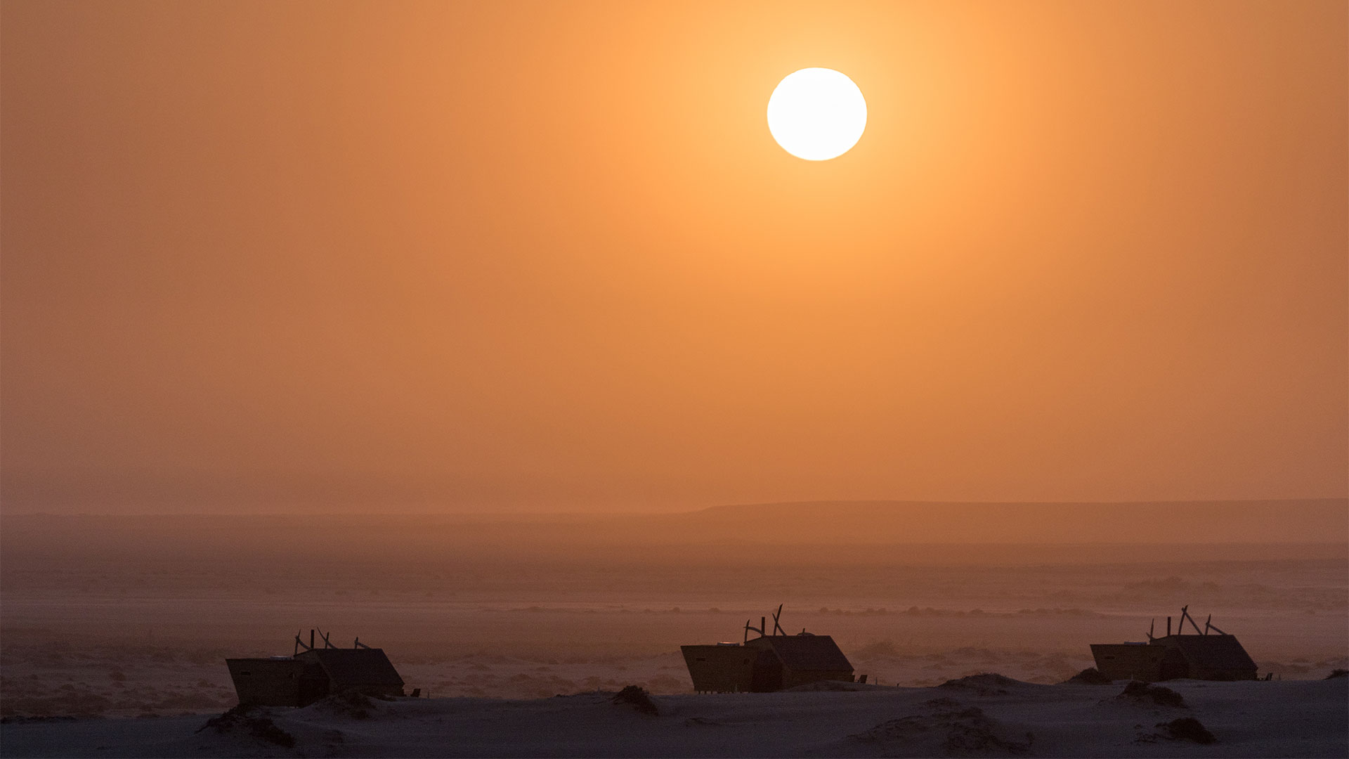 Shipwreck Lodge on Skeleton Coast in Namibia is located between the Hoarusib and Hoanib rivers in the Skeleton Coast National Park, and is just 45 km from Möwe Bay. These eye-catching and wonderfully made shipwreck-shaped chalets are placed carefully between the dunes and boast an extraordinary view of the Atlantic Ocean where the cold Benguela current provides guests with a refreshing breeze that will keep you cool in the desert setting.