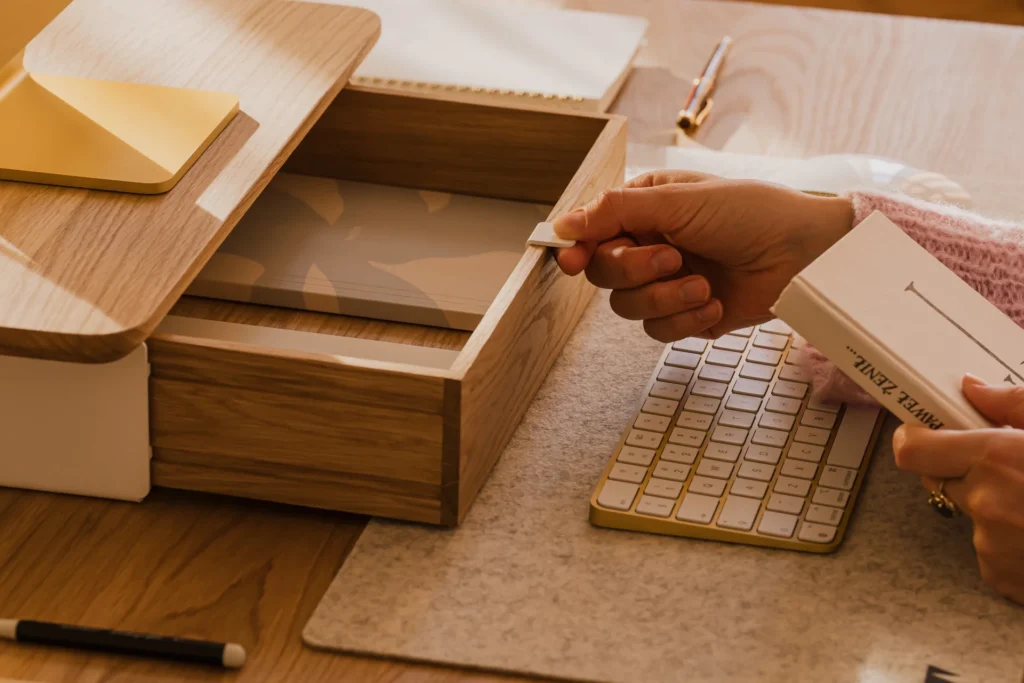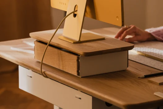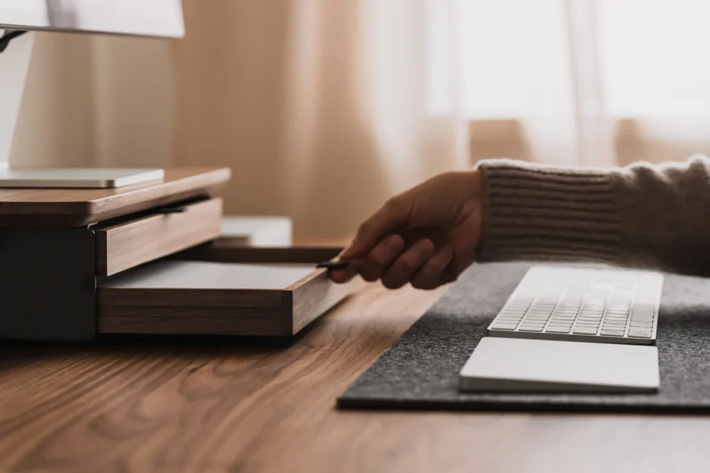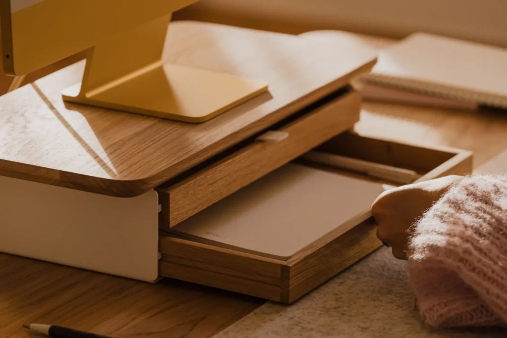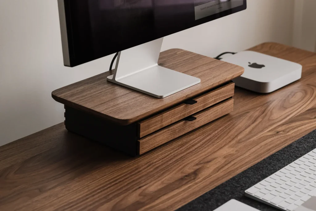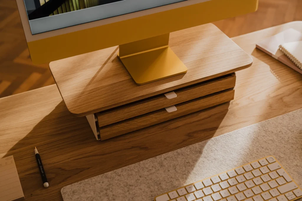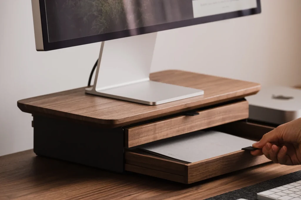 By elevating your screen to a proper ergonomic height, it encourages better posture, saving you from the dreaded “tech neck” that plagues us all by 4 PM. But beneath that elevated platform lies the real magic: an integrated modular drawer system.