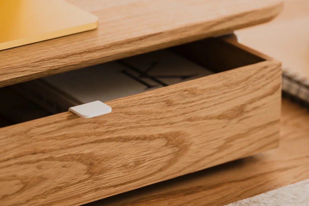 This isn’t a flimsy, stuck-on after-thought. It is a robust system of steel runners that allows for serious customization. Depending on how much structure you need to tidy your space, you can configure it with one deep drawer for bulky items like hard drives and headphones, or two shallow ones for notebooks, pens, and charging cables.