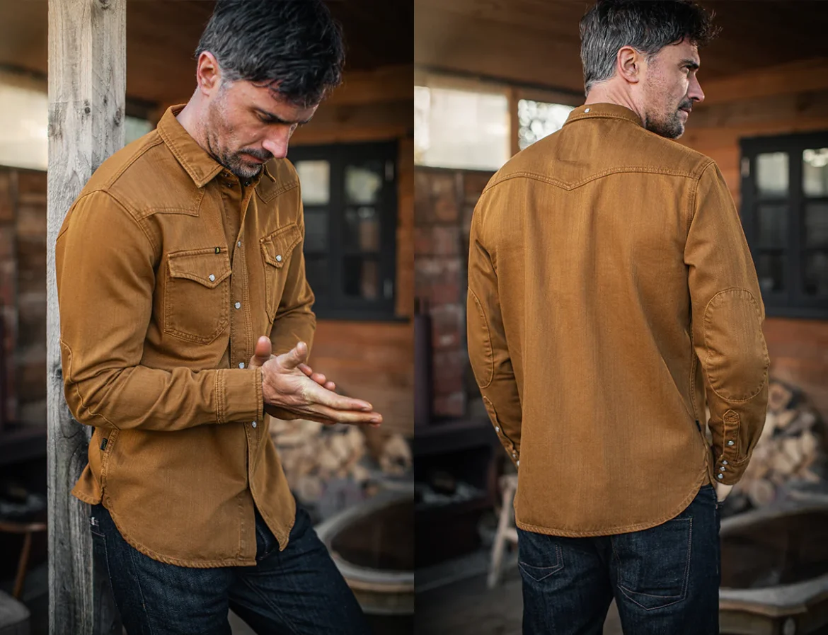 The design pays homage to iconic Western shirts of the American frontier, featuring a Western-style yoke and distinctive slanted pockets that offer both flair and functionality. These details evoke the rugged masculinity and practical roots of its 19th-century predecessors, originally crafted for cowboys and ranchers. Yet, the Wyatt Shirt introduces modern twists that elevate it beyond its vintage inspirations.