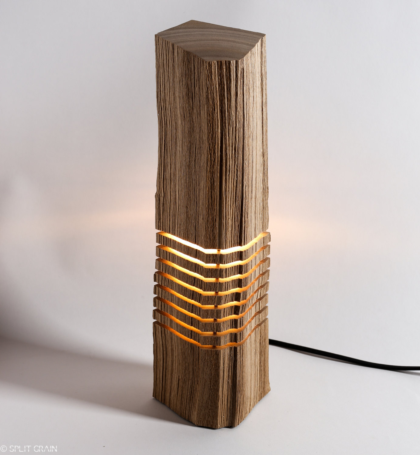 The SplitGrain Lamps come in a number of different shapes, sizes and materials but they all boast an unparalleled visual appeal that comes from the fact they have bursts of light eeking through natural looking pieces of wood. Take a look at a few more shots below:
