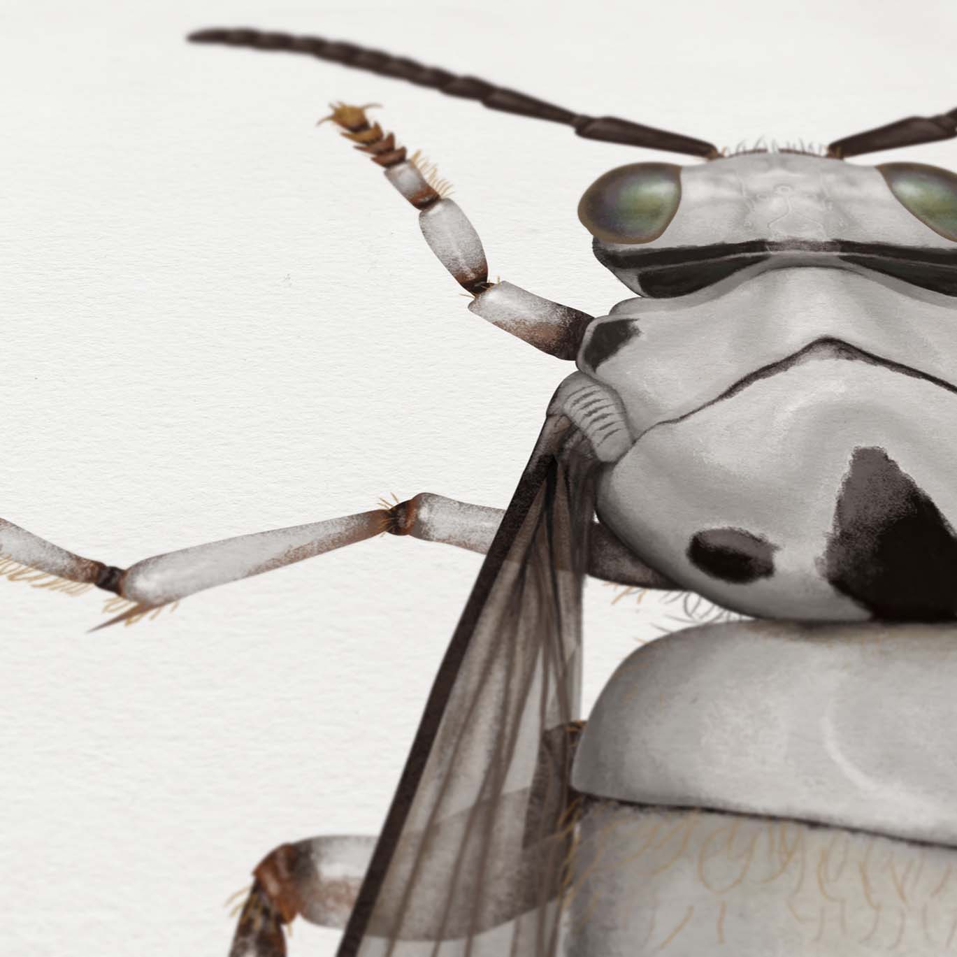 Richard Wilkinson’s Star Wars Insect Prints feature some of the most notable characters from the Star Wars universe but also offer a few of the less mainstream characters as well. Regardless of where your loyalties lie with the characters, you’re sure to find a print here that ticks your boxes with the likes of R2D2, Chewbacca, Darth Vader and Storm Troopers all captured in their insect forms.