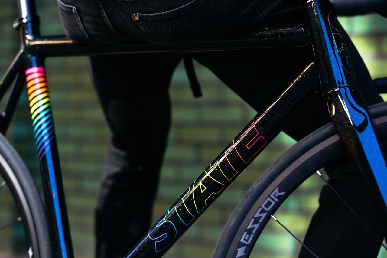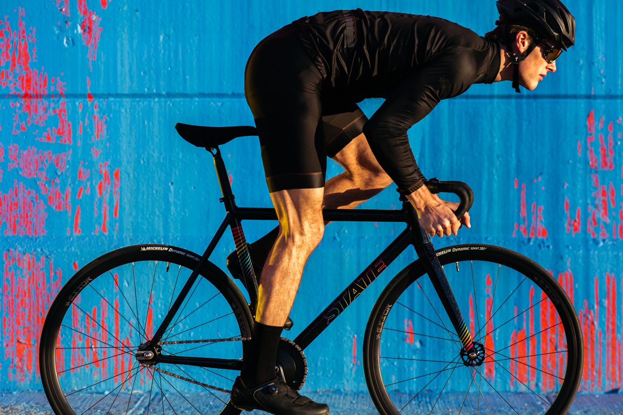 Unparalleled in performance and aesthetic superiority, the State Bicycle Co Undefeated II Black Prism Edition Bike has a stiffened front end which is where you’ll find a newly oversized-tapered head tube and matching Essor USA full carbon fork for significantly enhanced handling capabilities and responsiveness. These brand new features ensure that the Undefeated II Bike is the ideal ally for mastering fixed-gear crits.