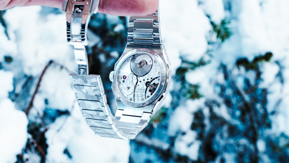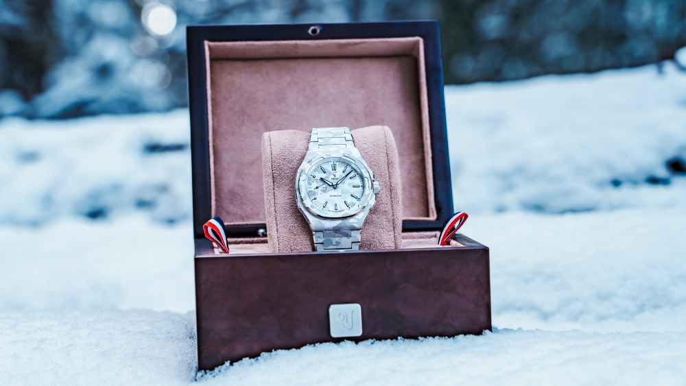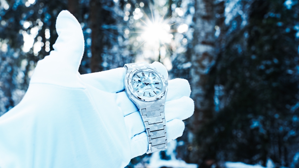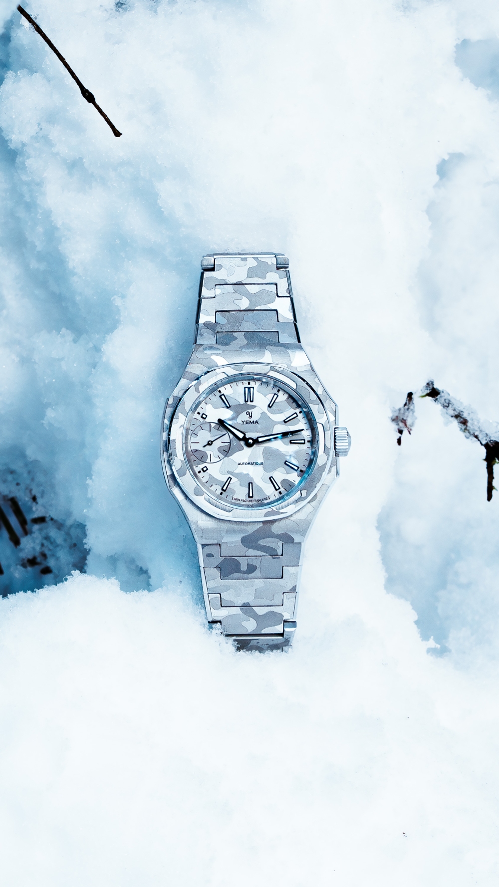 The Wristmaster line has always been a canvas for Yema’s more adventurous retro-futuristic designs, but this special edition takes the concept to a new level of integration. Limited to just 100 timepieces, the watch features a “snow camouflage” signature that is laser-finished across the entire exterior.