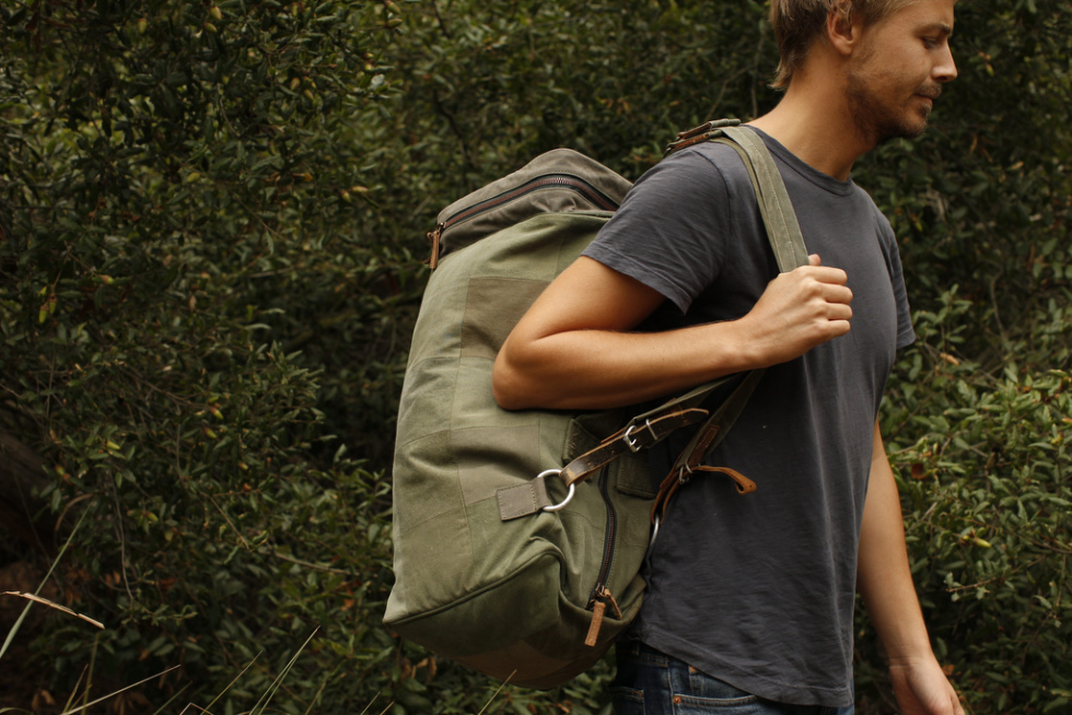 Stephen Kenn has been collecting vintage military duffle bags from the 40’s and 50’s for years now and they’ve, at last, found a way to make use of the stunning vintage hardware and canvas they are made from. They took them apart, piece by piece, and incorporated those pieces into new designs with our scrap upholstery canvas to deliver this mesmerisingly stylish Remanufactured Collection of accessories, of which the Backpack Duffle Bag has most captured our imagination.