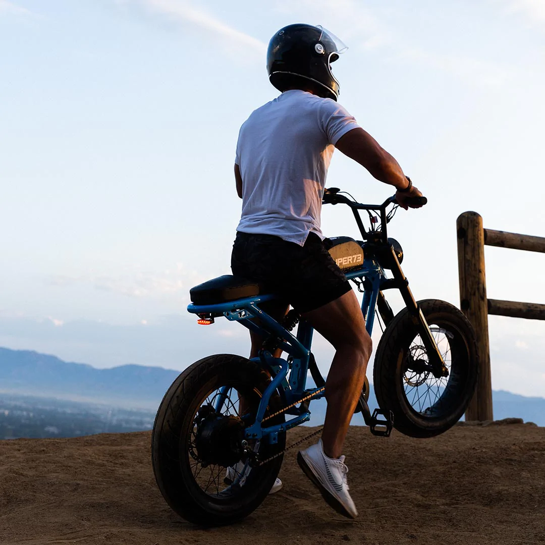 With new Drago Chromoly Handlebars and a Speedster Low-Profile seat, the R Brooklyn from SUPER73 is both an iconic and comfortable ride that you’ll want to jump on even if you’re just heading around the corner. Each bike comes pre-programmed in the Class-2 mode, which allows for throttle operation and pedal-assist riding up to 20mph and you can switch between ride modes to access Class-1, Class-3, and Off-Road mode to reach 28mph+.