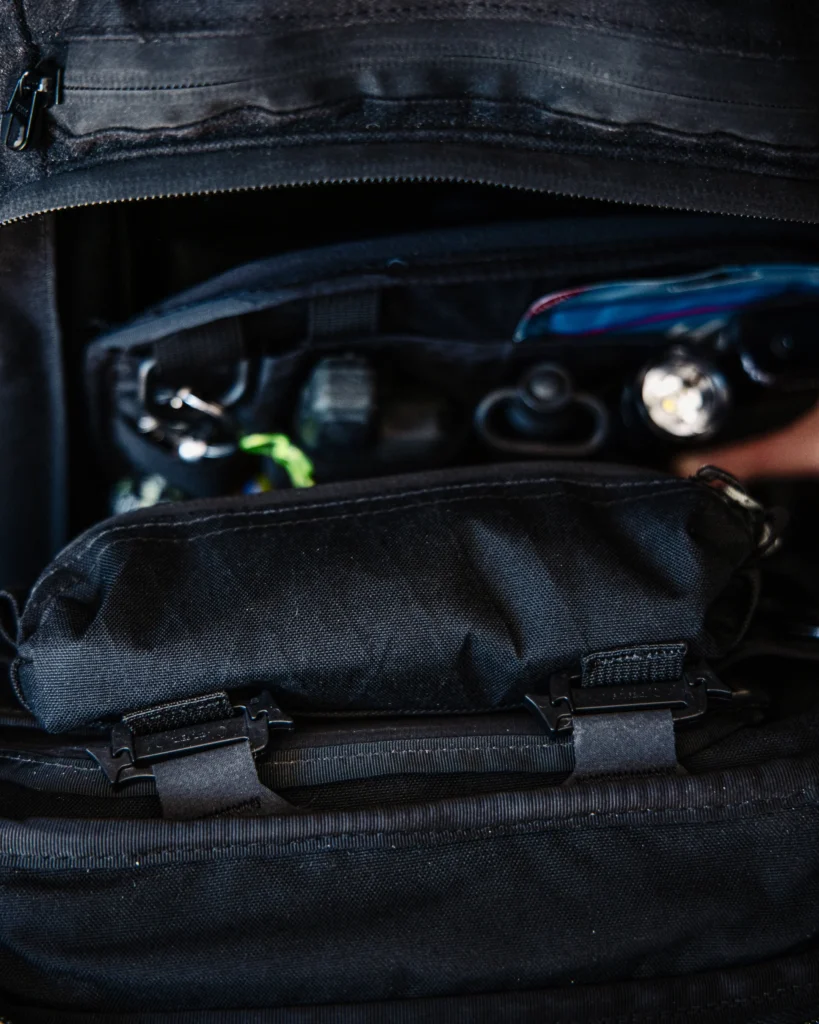 With Helix attachment points located at the top and bottom of the back panel and the front panel, you can integrate Control Panels, Transport Sleeves, or Compression Strap Kits to secure bulky loads. It essentially allows you to customize the interior architecture of the pack to suit your specific daily mission.