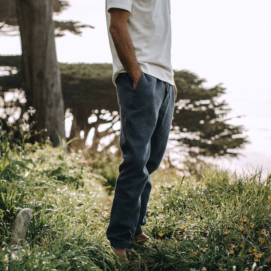 Taylor Stitch have really taken a shine to the unparalleled look and feel of a well-done waffle weave and this is something that shines through in these great looking  Après Pant in Charcoal Waffle. This mid-weight, 100% organic cotton has been lightly washed, which enhances its textural depth and gives it a degree of softness that can only be rivalled by those sweatpants in the back of your closet you haven’t worn since college.