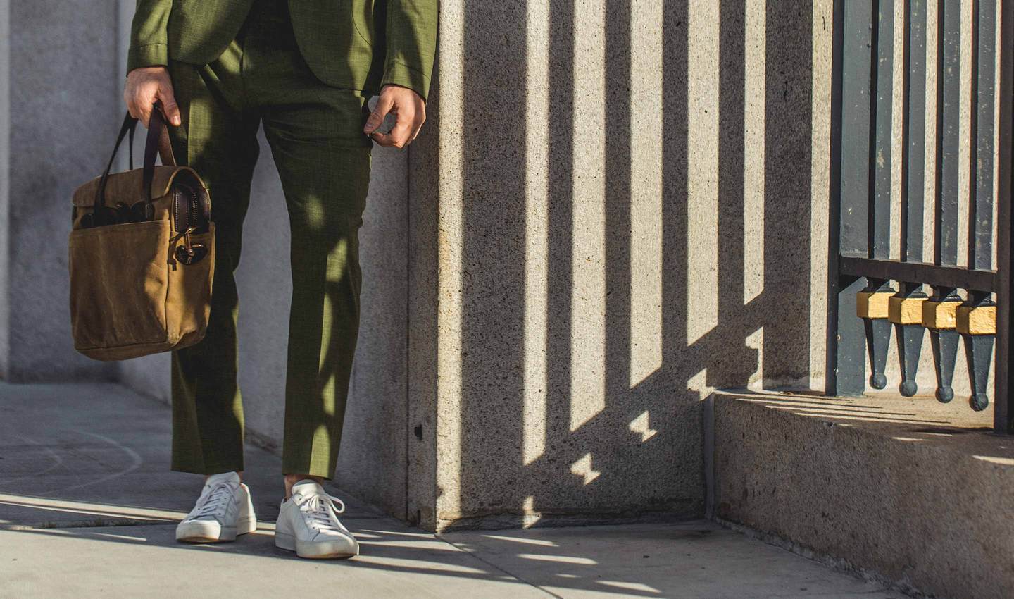 Available in both British Khaki and Evergreen, these highly versatile Telegraph Trousers from Taylor Stitch can be worn to a wedding or dressed down as slacks with a tee. Constructed from an extremely lightweight wool that delivers the sort of stretch most men will want and demand, these eye-catching and supremely stylish trousers from Taylor Stitch are built to step up but aren’t afraid to get down. Immeasurably cool and perfect for year round wear, the Telegraph Trousers are crafted from 7-oz. 75% Wool, 23% Linen, 2% Spandex with a 100% Cotton chambray pocketing and trim. ($118 pre-funding / $148 after)