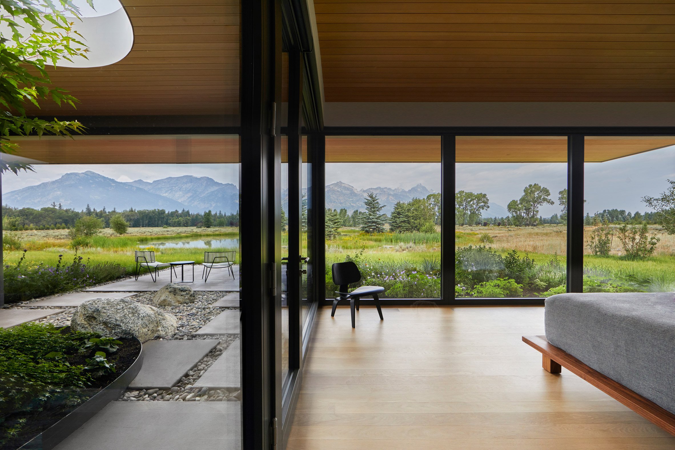 Gloriously designed both inside and out, Tengoku Residence from CLB Architects is exactly the sort of architecture we gravitate towards here at Coolector HQ and if you love Japanese style design, it will be right up your street as well. It is located in the ski resort town of Jackson, at the base of the Teton Range of the Rocky Mountains, it has a pretty amazing vista stretched before it. It is situated next to a small marshy artificial pond in a grove of blue spruce.