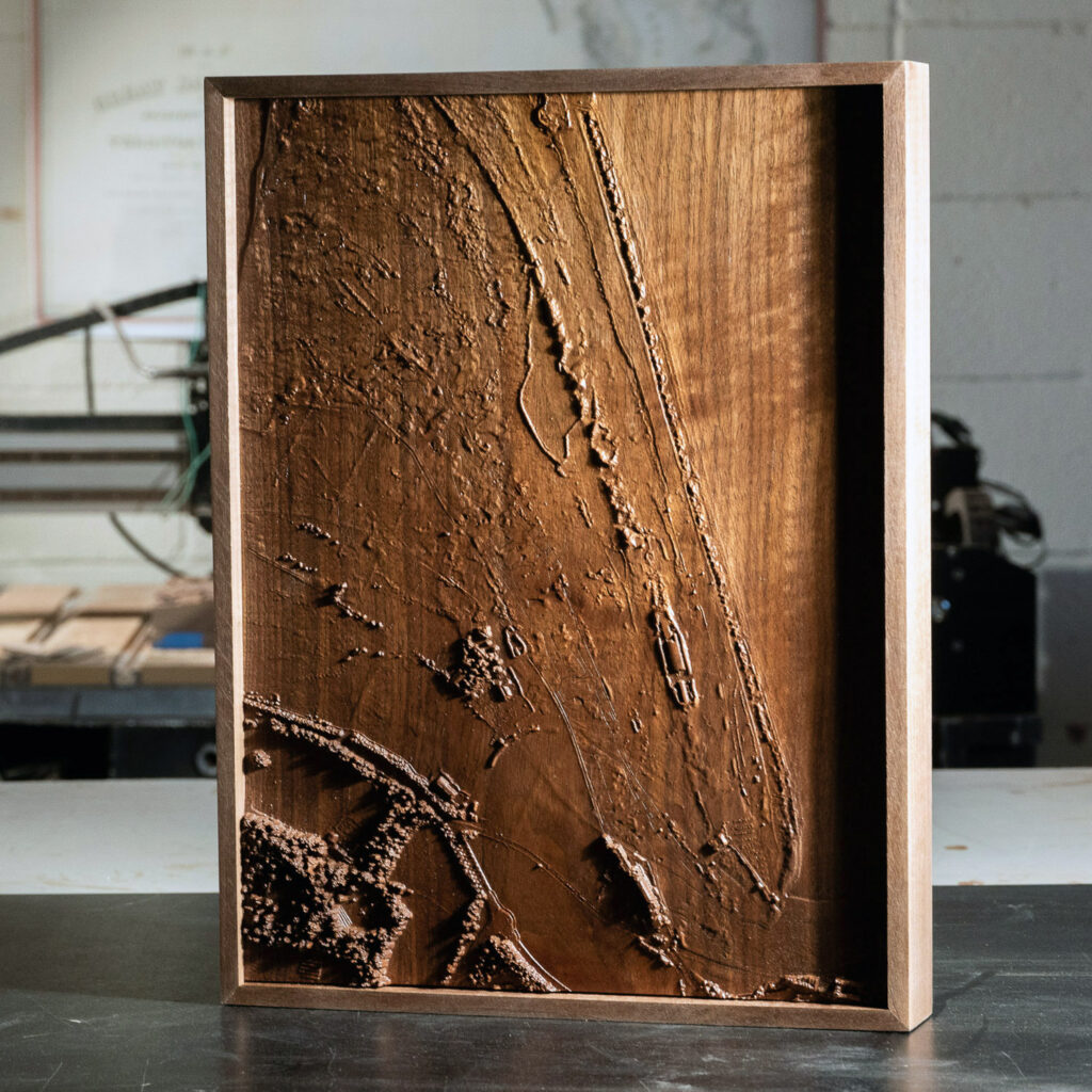Muir Way, a brand already celebrated for transforming maps into fine art, has applied its unique vision to the world of golf with breathtaking results. Each map is a masterpiece of material and technology, beginning its life as a solid piece of genuine American Walnut.