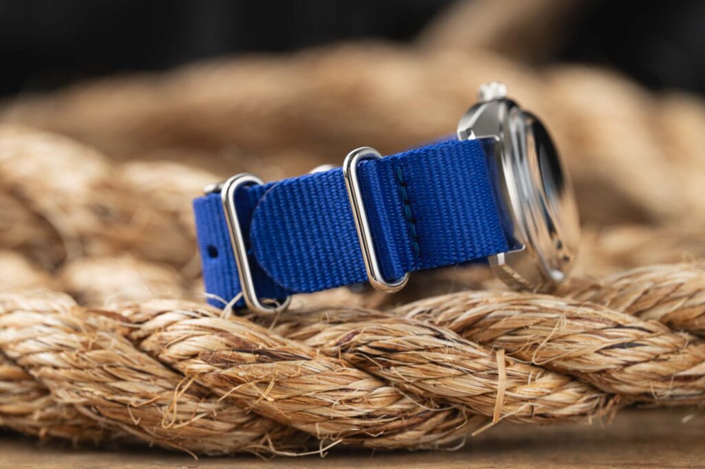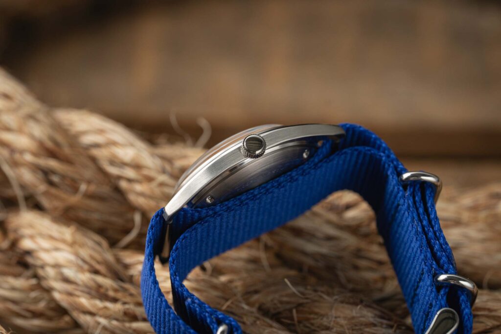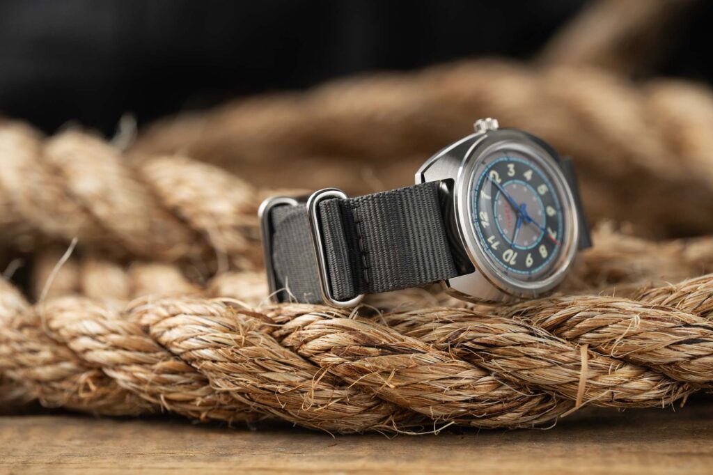 The collection is offered in two winter-ready colourways, both possessing distinct personalities. The Whirlpool edition is a study in rich, moody blues, pairing deep indigo and denim tones with sky-blue and yellow accents, presented on a vivid blue nylon mil-strap. It’s bold, but perfectly balanced.