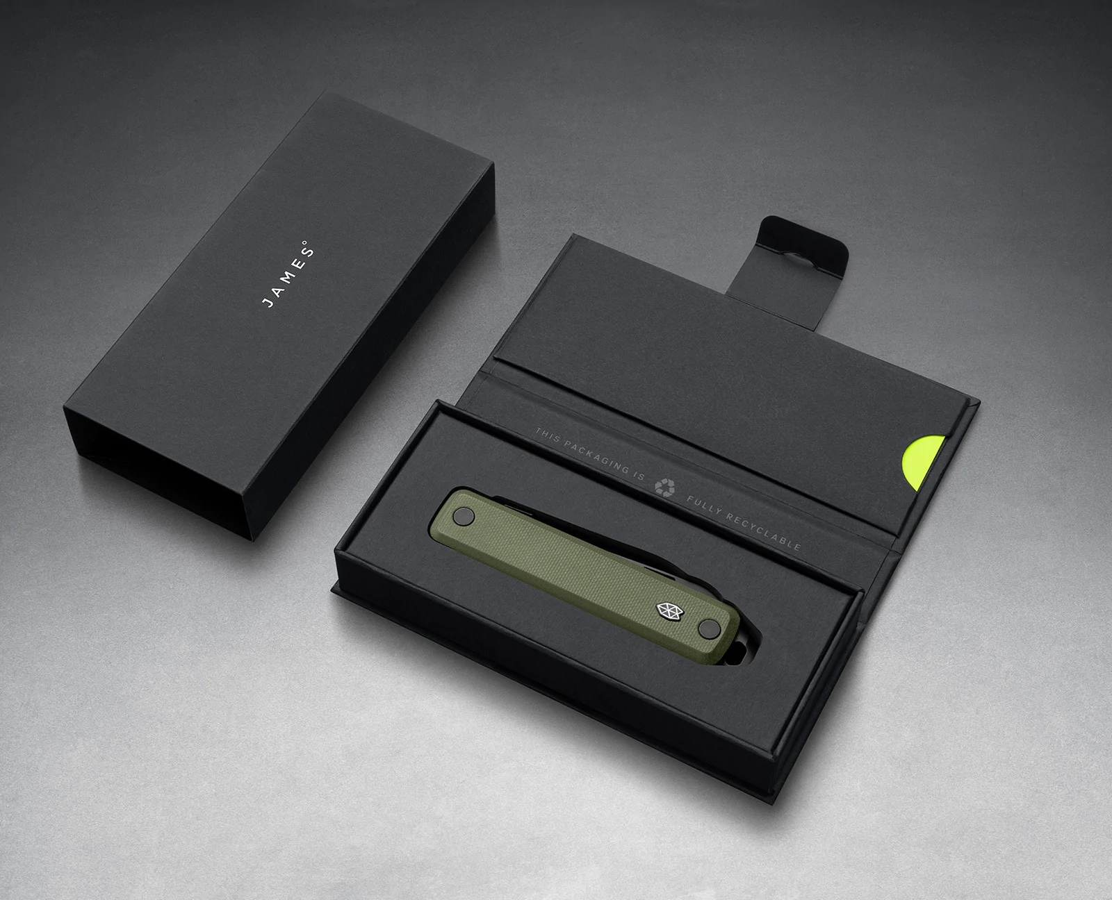 There are loads of great new features to The Ellis Multi-Tool that EDC aficionados are sure to appreciate and this includes the fact that The James brand has updated the construction of the Ellis into a slip-joint design to make it simpler to operate. The new Ellis also boasts a deep-carry wire clip as well as the brand’s “All-Things”® scraper, flat-head screwdriver and pry tool. The Ellis is built around a partially-serrated Swedish Sandvik 12C27 stainless-steel blade and is available in three different scale options.