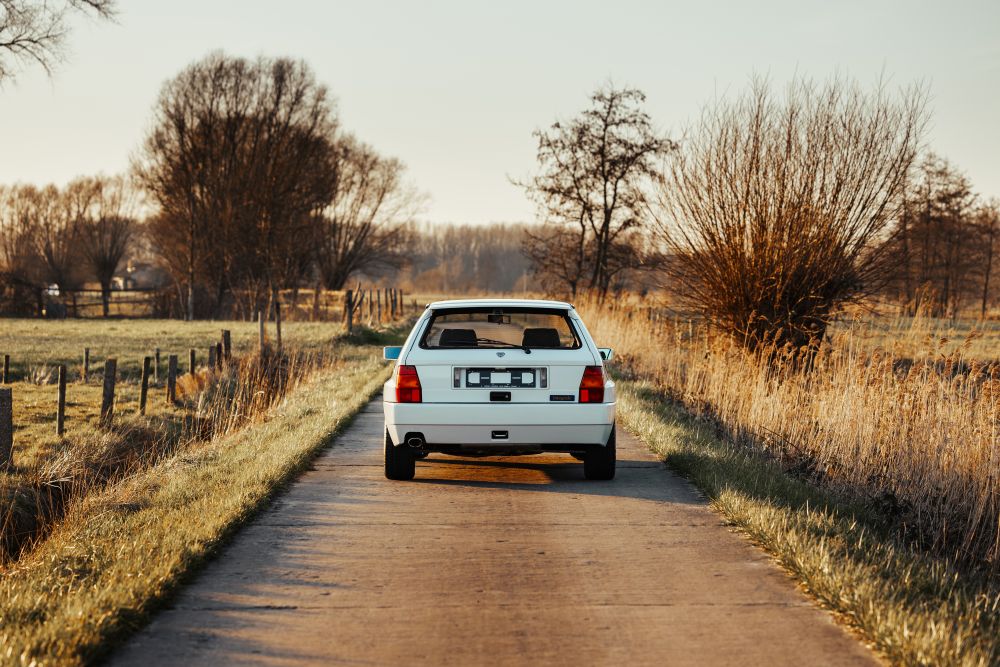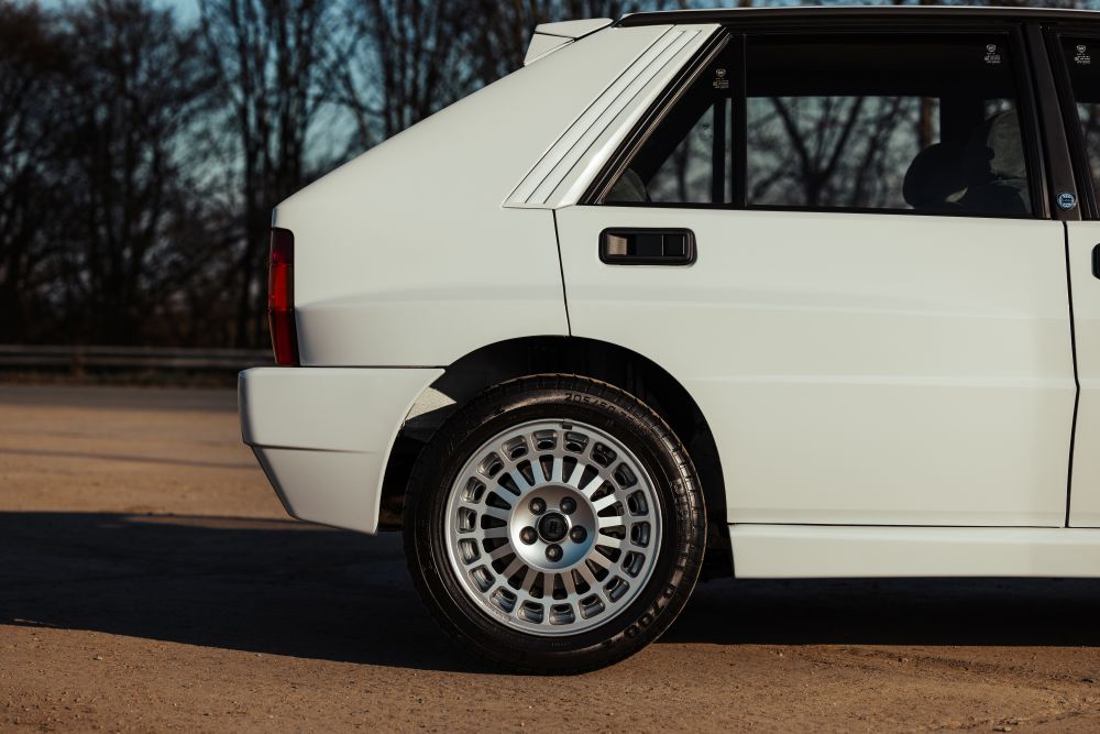 The Evoluzione was Lancia’s final, defiant roar in the World Rally Championship. Built as a homologation special to meet Group A regulations, it took the already formidable Integrale and transformed it into an even more aggressive brute. The track was widened, the wheel arches were impossibly flared, and the car was given a more menacing stance with bonnet vents, a larger grille, and a definitive tailgate spoiler—all designed to improve cooling and airflow on the punishing stages.