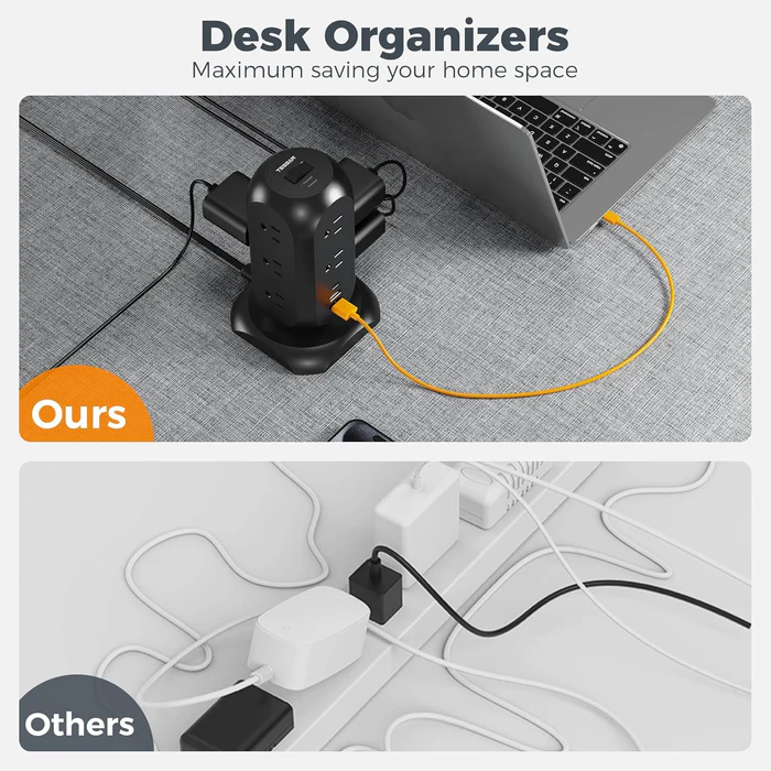 If you are tired of playing “adapter Tetris” every time you need to plug in a new gadget, the TESSAN Surge Protector Power Strip Tower is here to civilize your electricity. It is not just a plug socket; it is a vertical monument to organization, designed to turn your chaotic charging situation into a streamlined power hub.