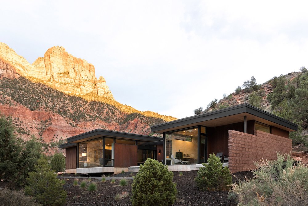 On the inside of The Watchman’s Cabin, the facades facing Zion’s rock formations are glazed from floor to ceiling, which delivers mighty expansive views of the glorious landscapes that stretch out before them, while more private areas have been clad in weathering steel for a robust aesthetic we’re big fans of here at The Coolector. This earthy tone, as well as the masonry’s reddish shade, take their design inspiration from the colour of the soil in the area. A truly exceptional home in one of the most magical locations in the world.