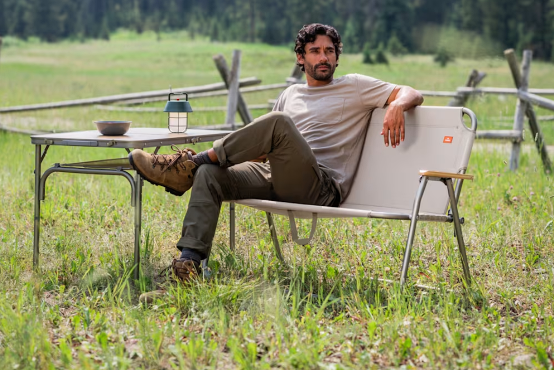 - A highly portable, lightweight folding bench with comfortable seating for two